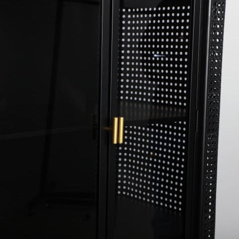 El armario FUSSEN transforma tus espacios vitales, combinando estilo y funcionalidad en una pieza inigualable. Ideal para quienes buscan una solución que maximice el espacio y aporte elegancia a su hogar. Su diseño industrial moderno con hierro negro y vidrio dorado no solo embellece, sino que también organiza con eficiencia. (Punto y aparte)