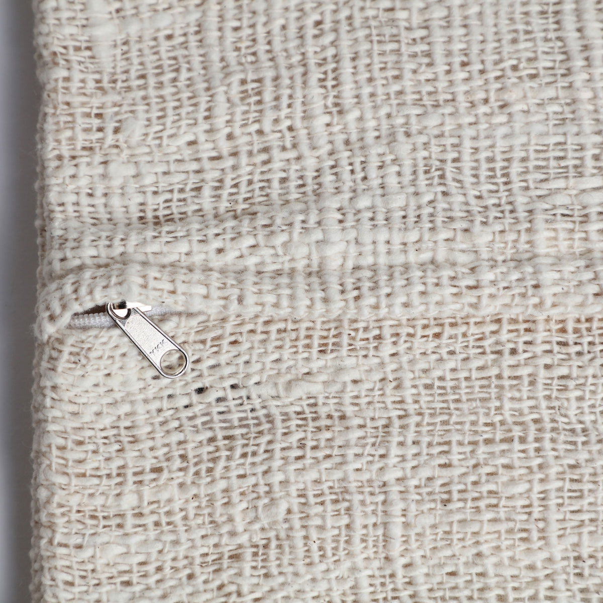 El Cojín Clancy está confeccionado con una mezcla inteligente de algodón y poliéster, dos materiales reconocidos por su resistencia y suavidad al tacto. Este cojín de color blanco roto tiene una textura detallada que aporta distinción sin sacrificar la comodidad. Su acabado cuidadoso garantiza durabilidad y un aspecto refinado, ideal para quienes valoran las piezas de alta calidad en su hogar.