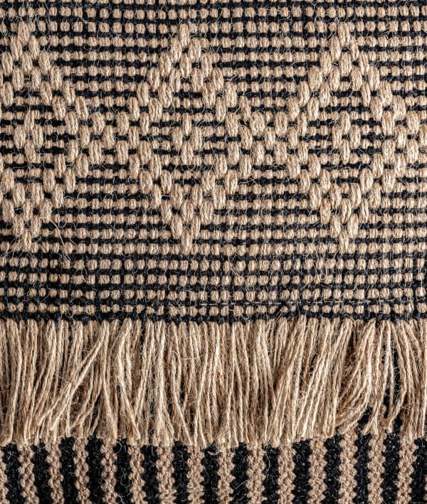 Su diseño versátil lo convierte en un complemento ideal para salones, dormitorios o zonas de estar, donde añade profundidad y ritmo visual. El contraste entre el yute marrón claro y el poliéster negro permite integrarlo tanto en decoraciones contemporáneas como en ambientes rústicos o de inspiración mediterránea. Colocado sobre un sofá, en la cama o en un rincón de lectura, este cojín boho cuadrado transforma el espacio con una presencia textural y un aire relajado.