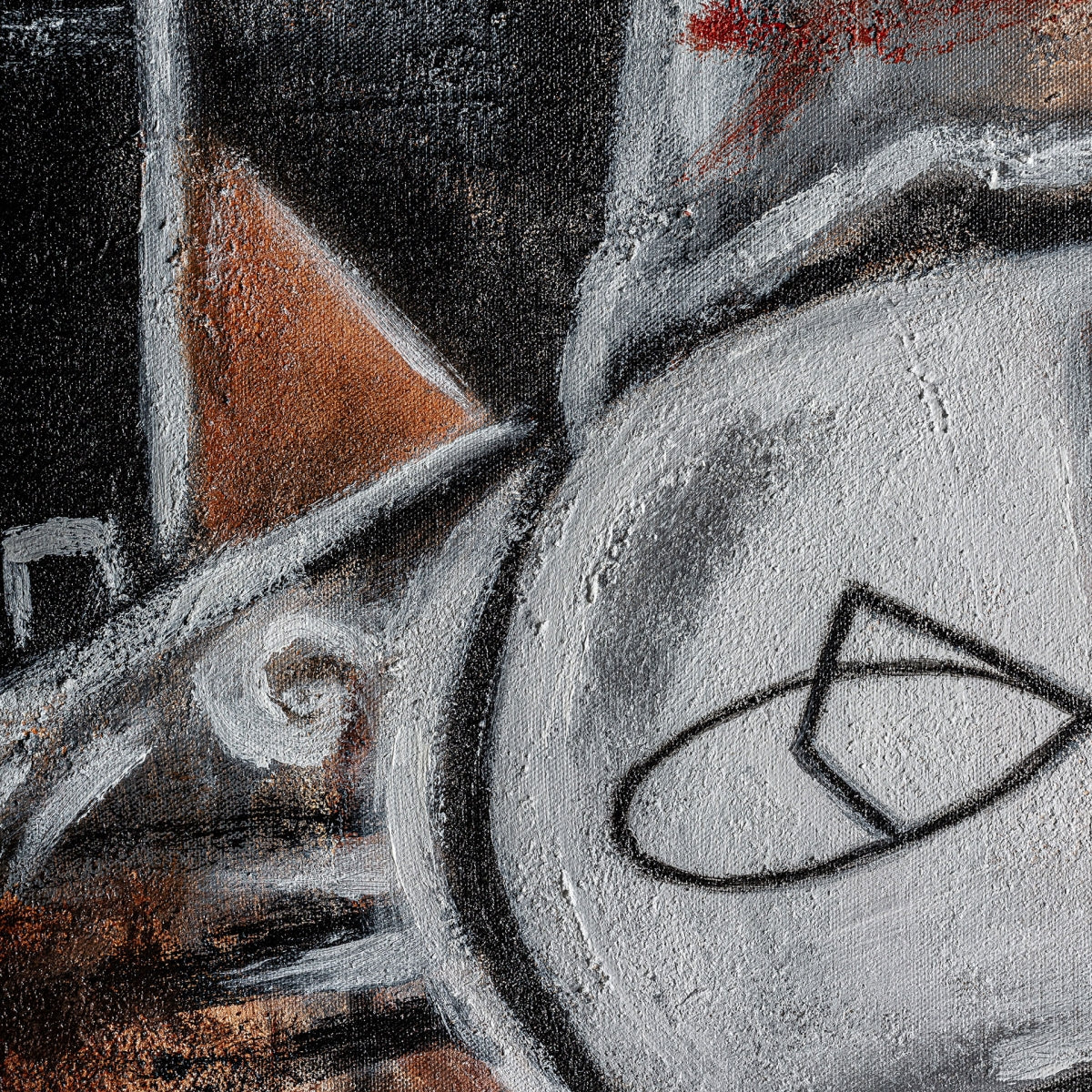 Esta obra de arte destaca por su confección en lienzo, un material conocido por su resistencia y capacidad para recibir acabados detallados. El lienzo exhibe una paleta de tonos oscuros que se complementa con un acabado que evidencia un trabajo manual cuidadoso, incrementando así el valor percibido de la pieza. Con su presencia robusta, refleja calidad y estilo en cada pincelada.