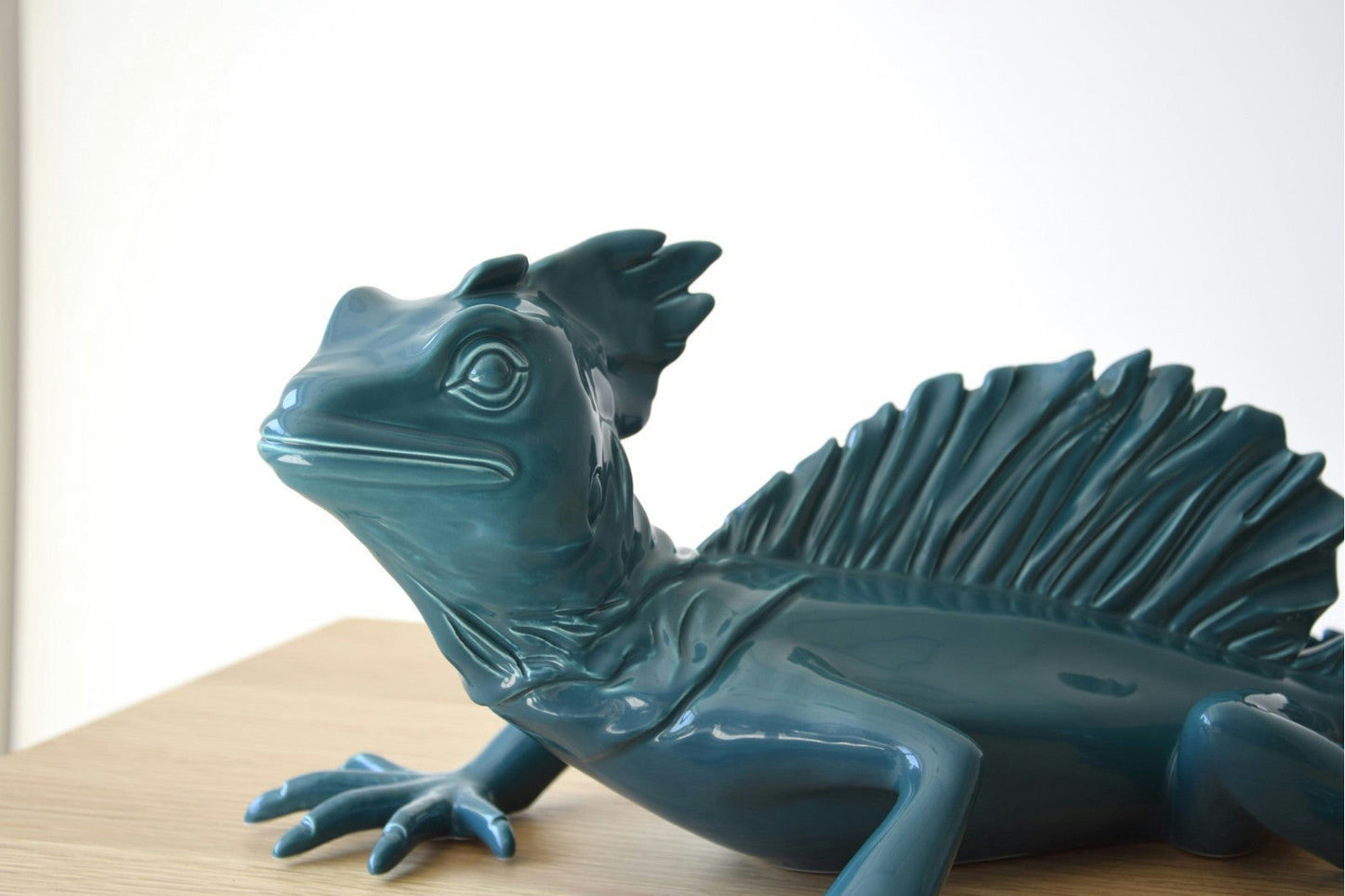 La Escultura Cerámica Basilisco Verde Brillante transforma cualquier espacio en un refugio de elegancia y carácter. Con su diseño detallado inspirado en el lagarto basilisco, aporta un aire exclusivo que equilibra la sofisticación con la calidez artesanal. Esta pieza resuelve la necesidad de contar con un objeto decorativo único que hable de sensibilidad y buen gusto, enriqueciendo la atmósfera del hogar o del despacho.
