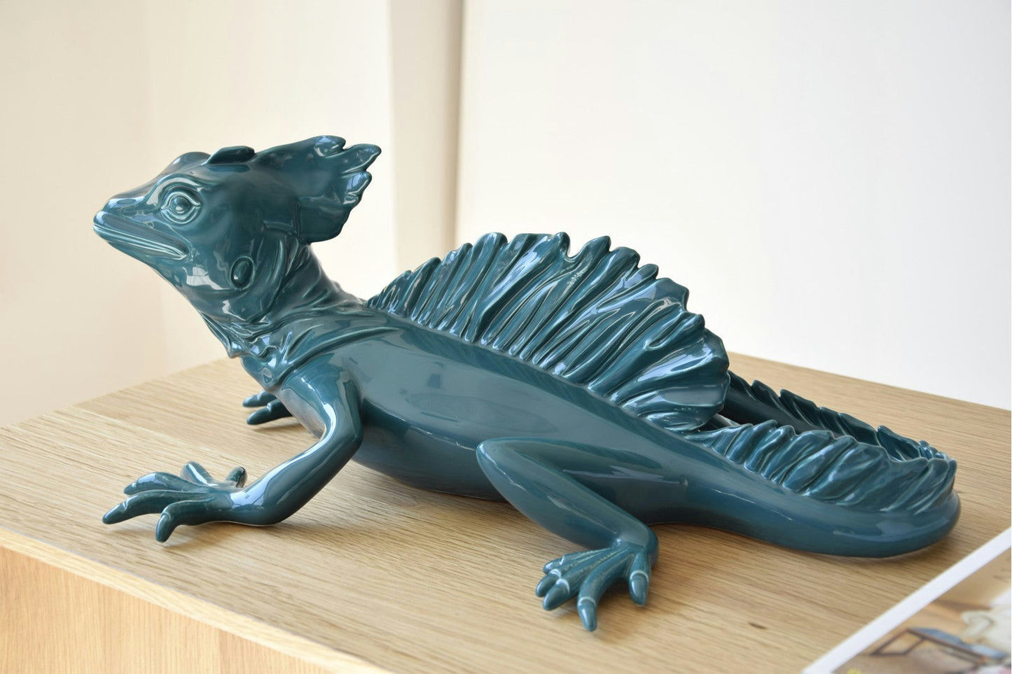 Ideal para salones, despachos o espacios donde la decoración merece un toque distintivo, la escultura se adapta armoniosamente tanto a ambientes modernos como eclécticos. Imagina este basilisco sobre una consola o una estantería, en una estancia luminosa donde su brillo y textura se convierten en punto focal. Su presencia aporta serenidad y un matiz de naturaleza estilizada, invitando a contemplar cada detalle con calma.