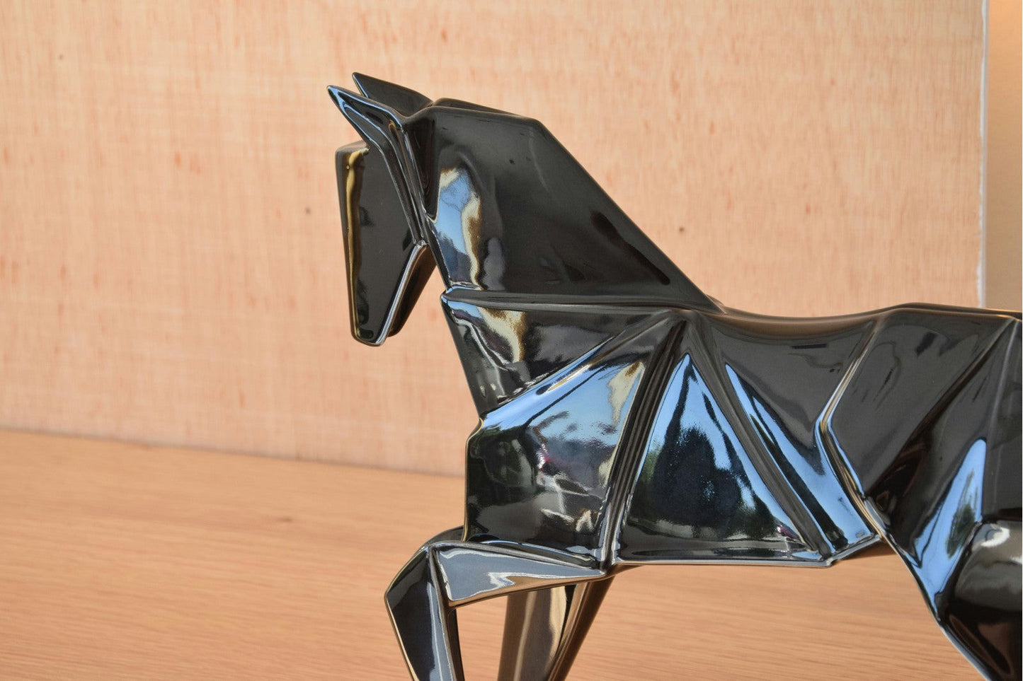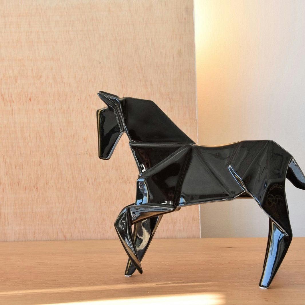 Figuras decorativas en cerámica Negro brillo Caballo Origami