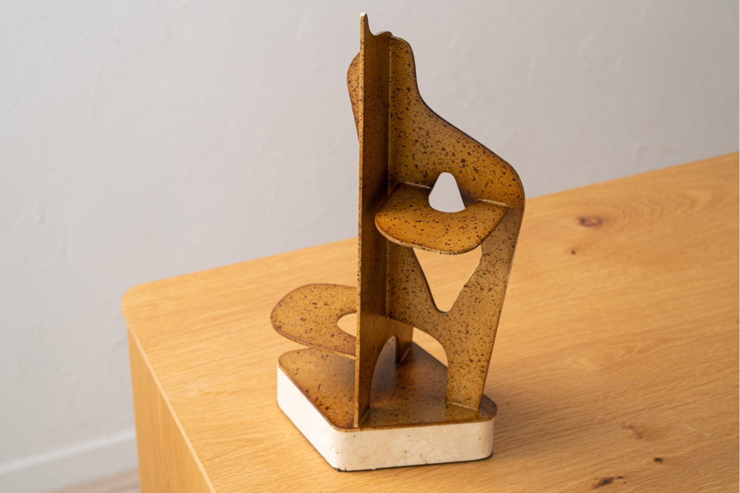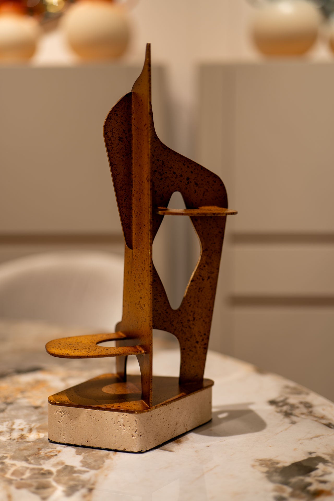 Figura decorativa en metal óxido y travertino Abstracta N4