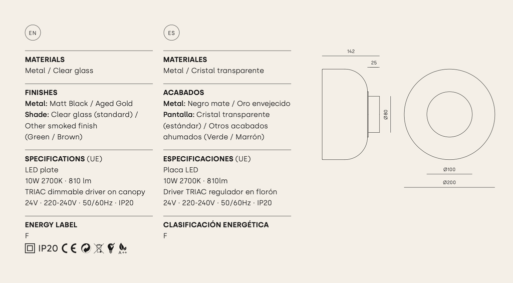 Fabricado con metal de alta calidad y acabado negro mate, este aplique destaca por su durabilidad y estilo atemporal. El difusor de vidrio claro ofrece una proyección de luz suave y homogénea, asegurando un rendimiento óptimo sin comprometer la estética. Confíe en esta selección para una experiencia lumínica que combina funcionalidad y diseño.