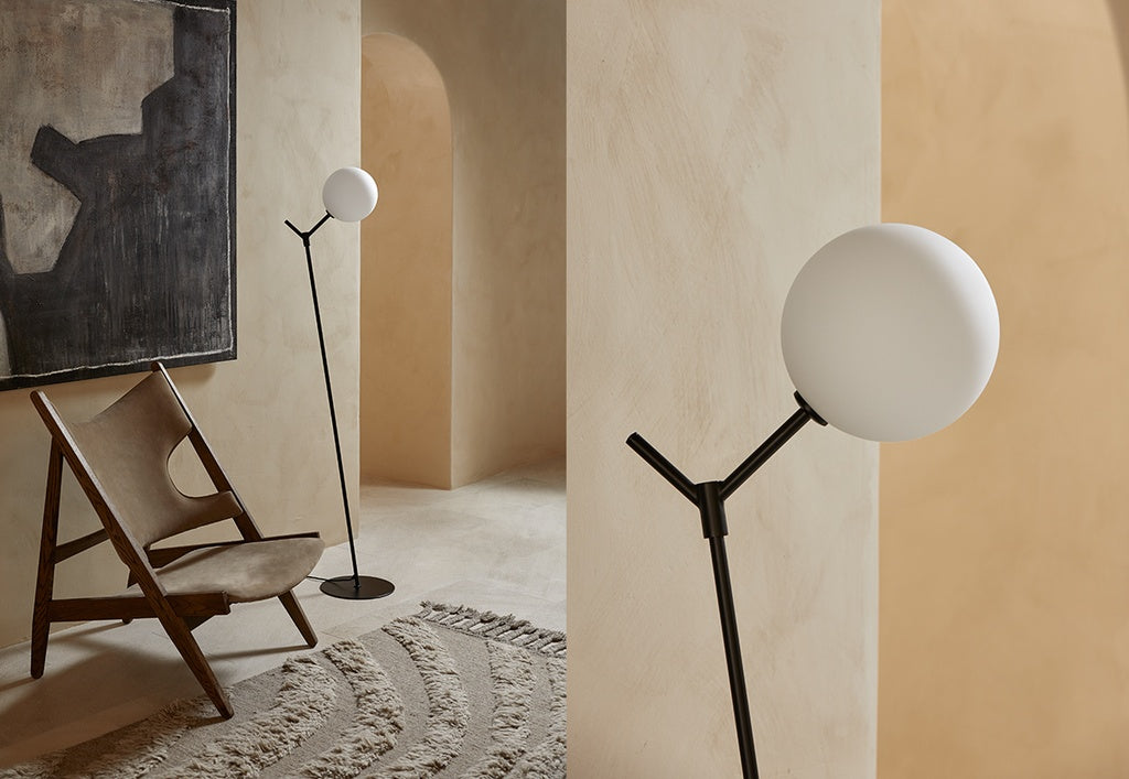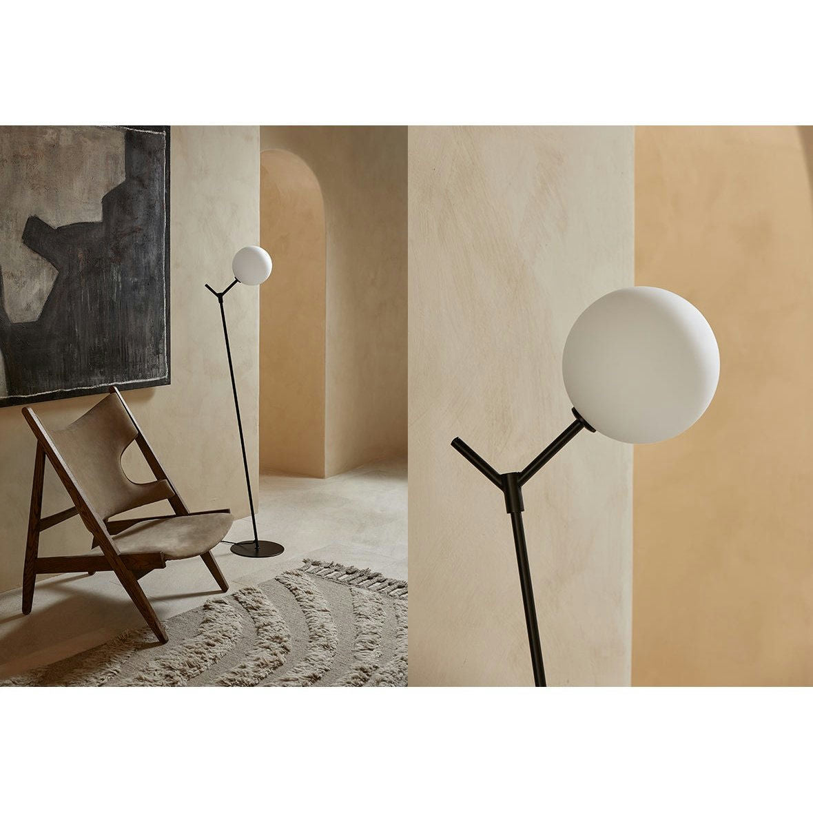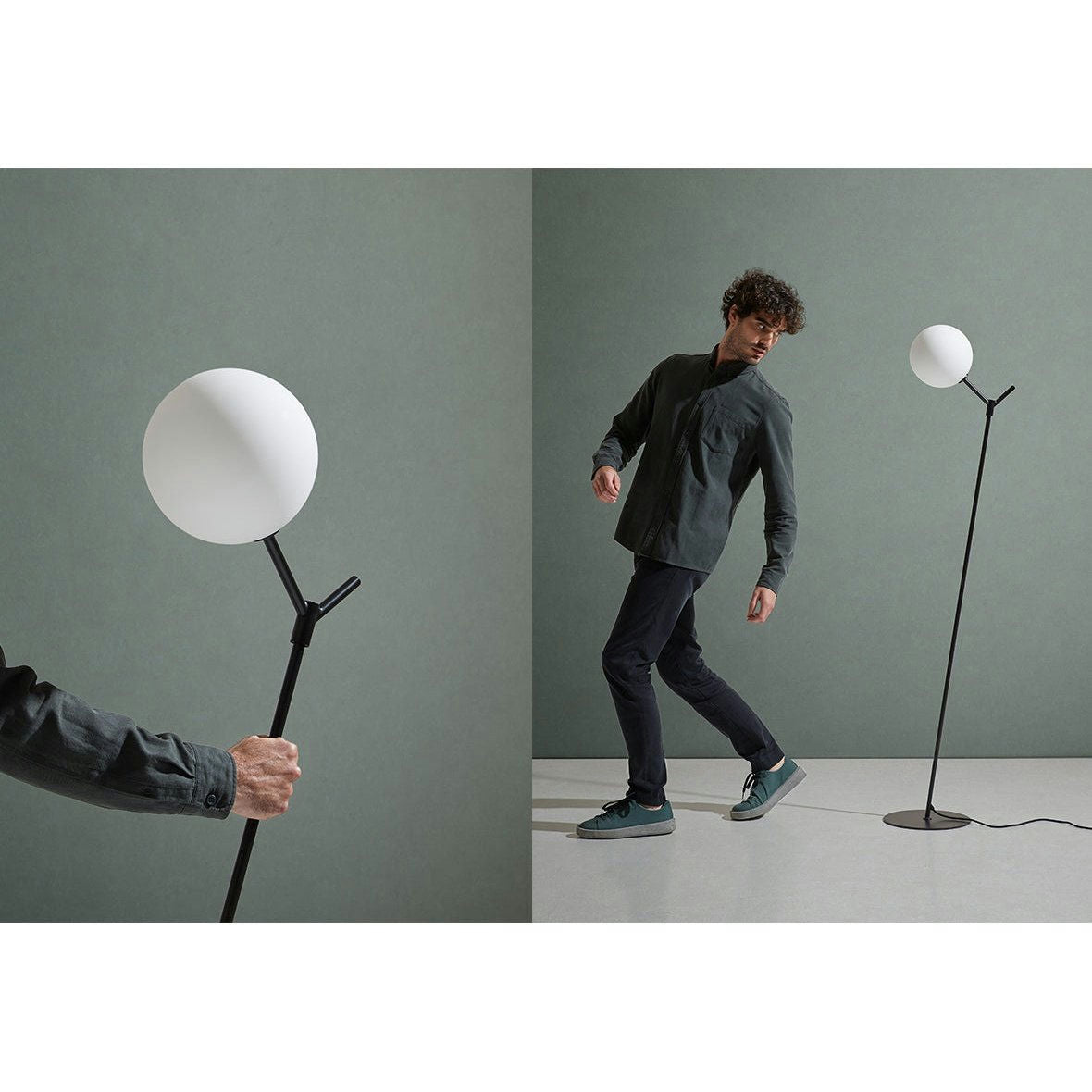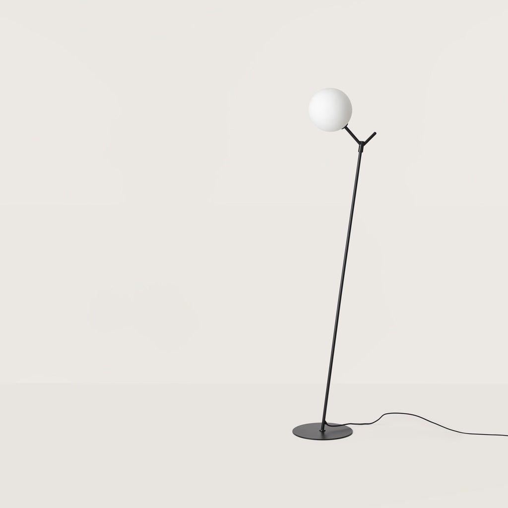 Fabricada con materiales de alta calidad, la Lámpara de Pie Atom cuenta con una estructura delgada de acero, conocida por su durabilidad y resistencia. Sus acabados en latón mate y negro mate le confieren un aspecto distinguido y un toque de sofisticación industrial. La esfera luminosa en vidrio soplado, disponible en opal y claro, no solo garantiza una iluminación suave y acogedora, sino que también asegura un ambiente relajante y equilibrado.