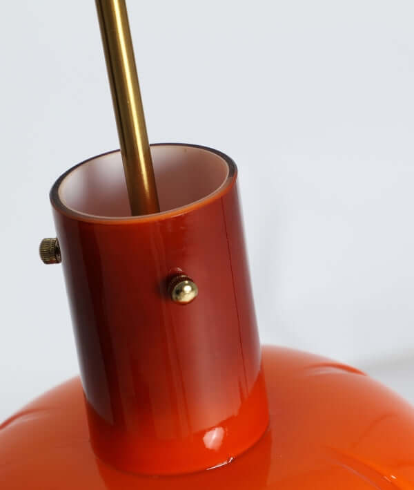 Para conservar la belleza del cristal naranja y el metal dorado, se recomienda limpiar la lámpara con un paño seco o ligeramente humedecido, evitando productos abrasivos. Es aconsejable protegerla de la humedad y del contacto directo con agentes corrosivos para mantener su acabado impecable.