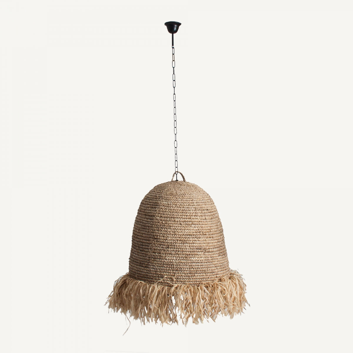 Fabricada con la más alta calidad en fibra natural, su color marrón añade un toque orgánico y exclusivo a su entorno. Su forma redondeada y acabados detallados aseguran no solo una estética impecable, sino también una durabilidad que garantiza años de iluminación sin preocupaciones.