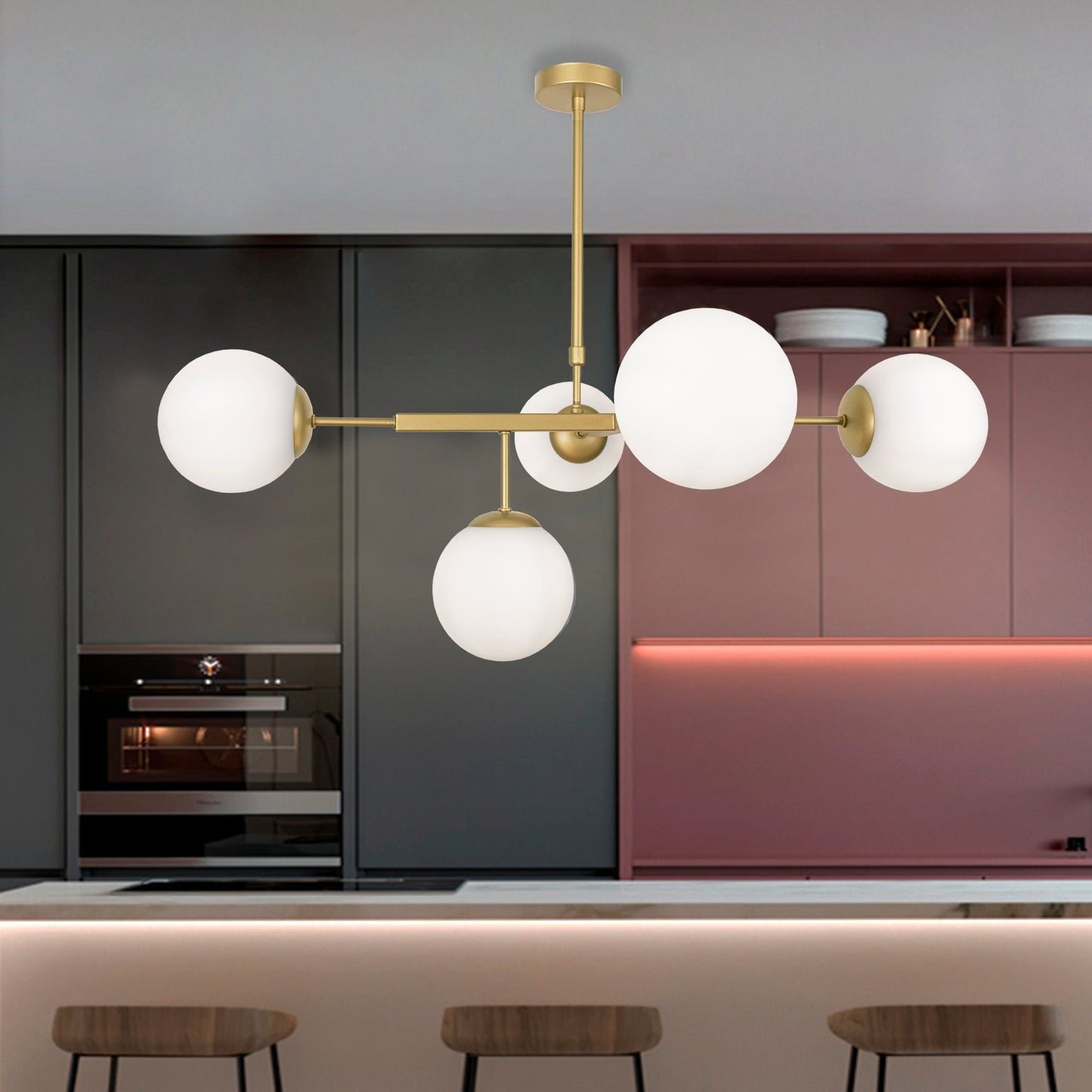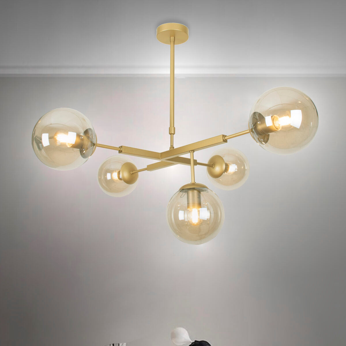 Fabricada en acero de alta calidad, la DT-Ball 5 destaca por su robustez y longevidad. Su acabado en color oro, junto con los detalles en negro, aportan un toque de modernidad y sofisticación. Las cinco esferas que completan su diseño son el elemento distintivo que marca la diferencia. Listo para acoger bombillas E27, este modelo no solo ilumina, sino que también actúa como pieza decorativa central en tu hogar.