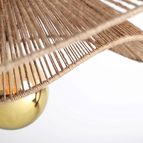 El yute en tonos marrones encarna la calidez de la tierra, complementando cualquier estilo de decoración que busque lo natural y elegante. Junto al hierro, presenta un contraste de texturas que eleva cualquier espacio. La artesanía detrás de cada lámpara Khed A asegura que obtengas una pieza única, combinando funcionalidad con una exclusividad casi artesanal.