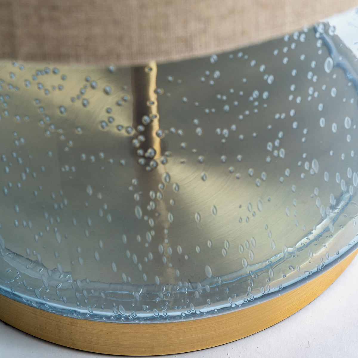 Lámpara de mesa en vidrio azul y detalles dorados Bluey
