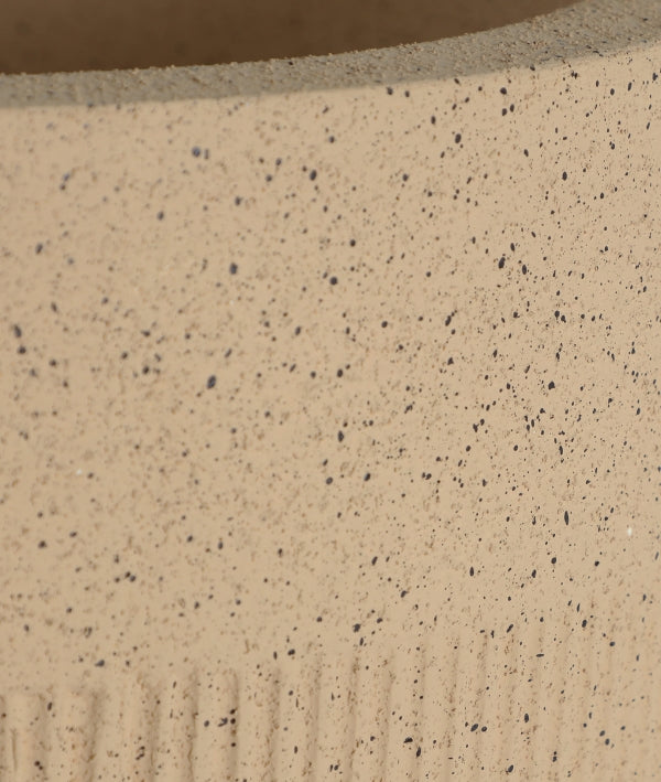 Fabricado íntegramente en poliresina, este macetero destaca por su robustez y su textura suave al tacto. El acabado en color arena, cálido y neutro, facilita su integración en distintas propuestas de interiorismo, aportando naturalidad y una estética atemporal. La calidad del material asegura una pieza ligera y resistente, fácil de mover y mantener, sin perder la estabilidad necesaria para un uso seguro.