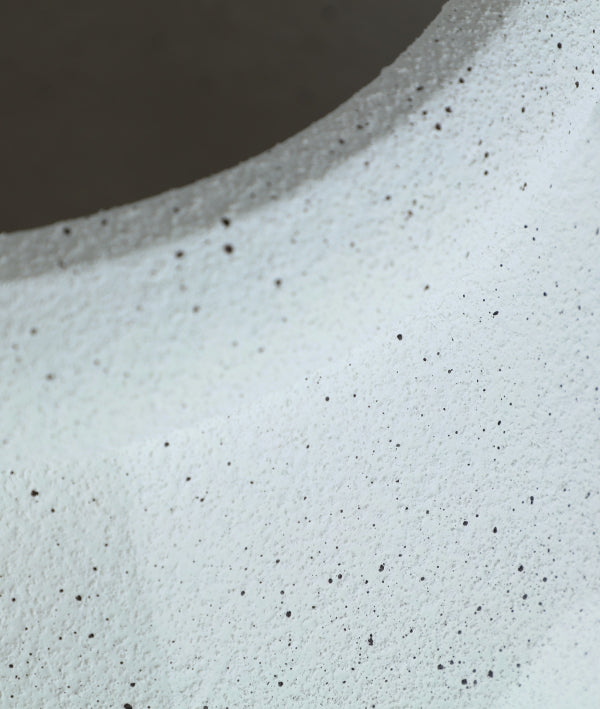 Fabricado en poliresina de alta calidad, el ELMUR XL se destaca por su superficie pulida y resistente, que transmite una textura suave al tacto. El color blanco roto, con matices sutiles, otorga versatilidad cromática y se integra con elegancia en espacios contemporáneos o minimalistas. Su diseño facetado añade profundidad, volumen y una sensación de ligereza visual, convirtiendo el macetero en una pieza singular y duradera, pensada para el uso cotidiano y el paso del tiempo.