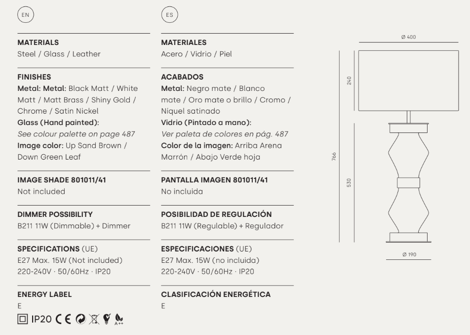 Lámpara de mesa en Vidrio y Metal Kitta Kitta