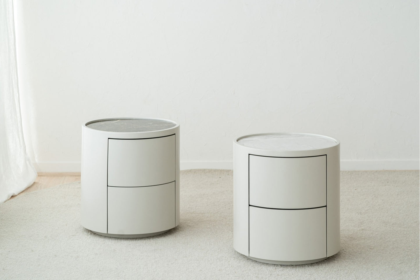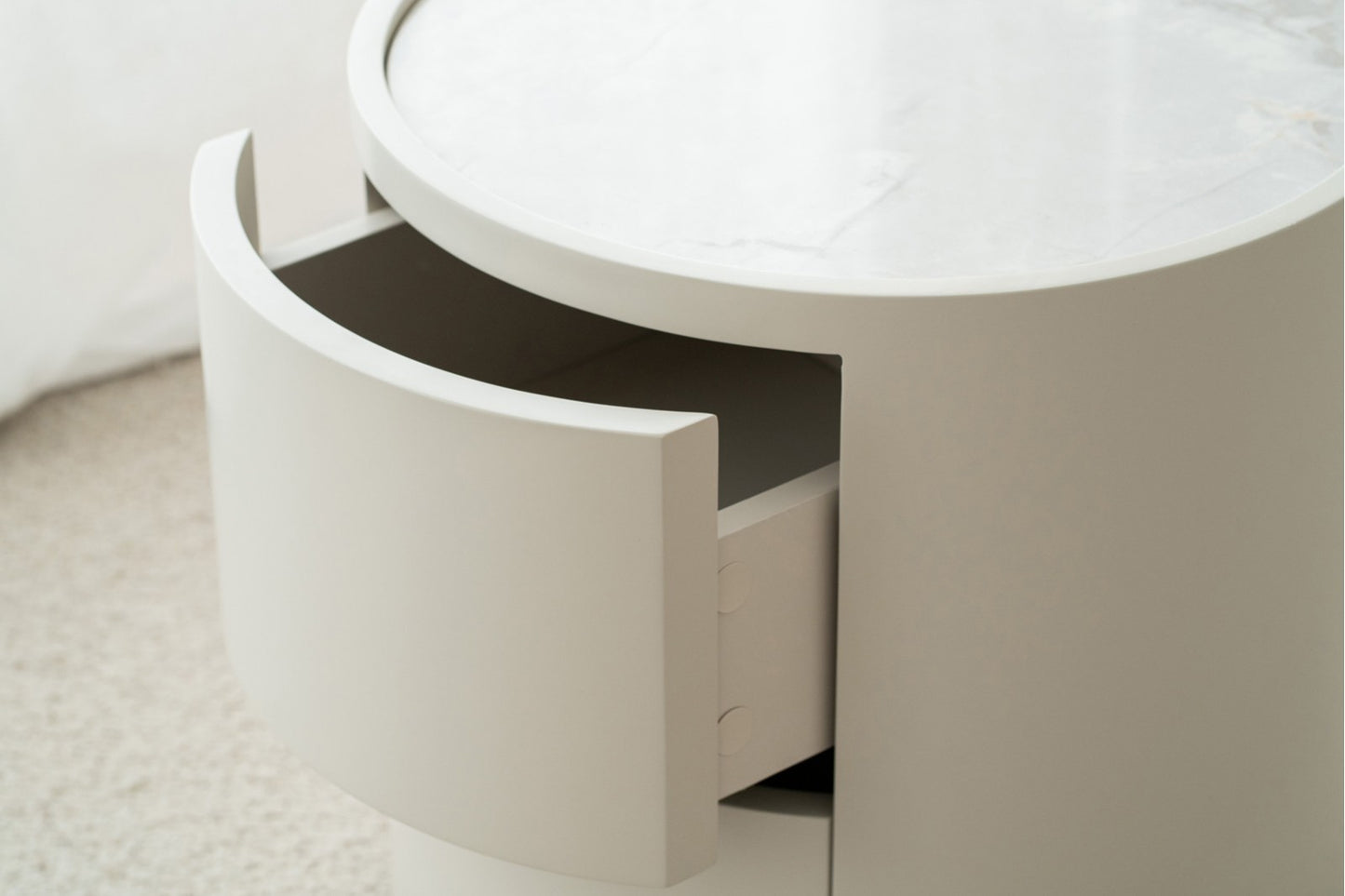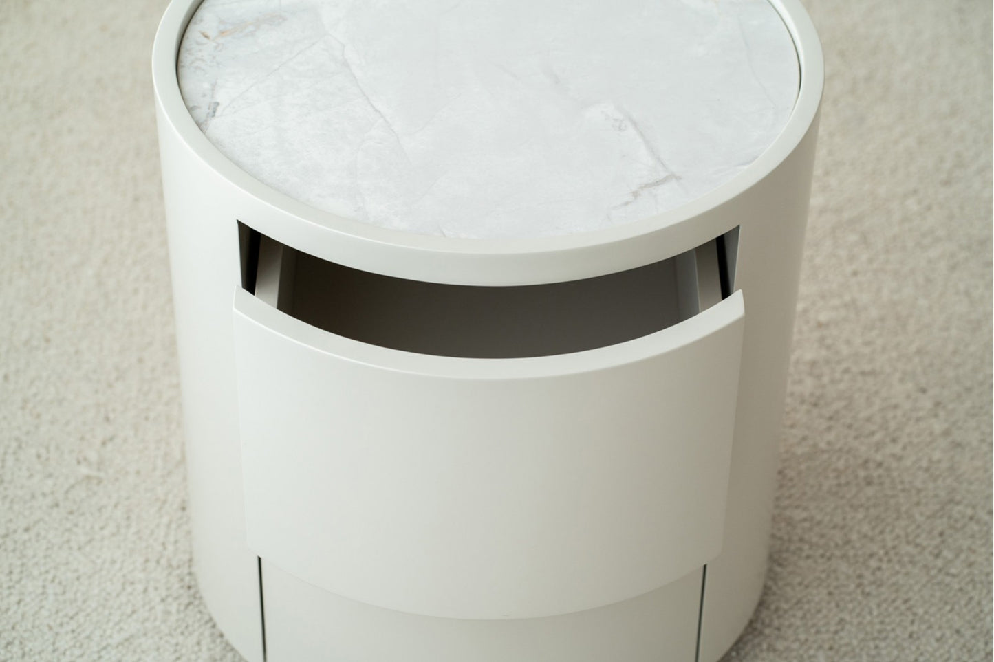 El diseño de la Mesa Auxiliar N.92 es un espectáculo para el espacio interior. Fabricada con un tablero de DM lacado en un sofisticado color gris arena, se une con cerámico blanco de alta calidad, que asegura durabilidad y resistencia. La apariencia mate no solo es estética, también protege, siendo una elección segura para cualquier decoración moderna.