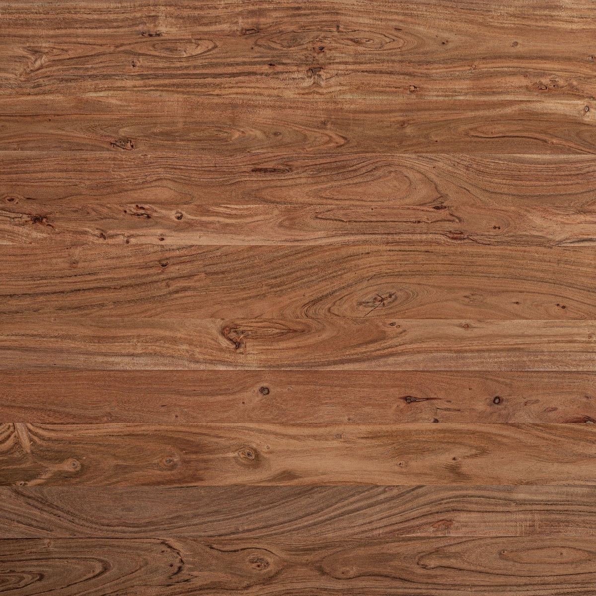 La madera de acacia utilizada en el tablero es reconocida por su durabilidad y su capacidad para resaltar sus encantadoras imperfecciones, como nudos y grietas, que aportan un toque único a cada pieza. El acabado negro y marrón fusiona lo moderno con lo tradicional, haciendo que este mueble se adapte perfectamente a diversos estilos de decoración contemporánea. La resistencia del hierro complementa la fortaleza de la mesa, asegurando años de uso satisfactorio.