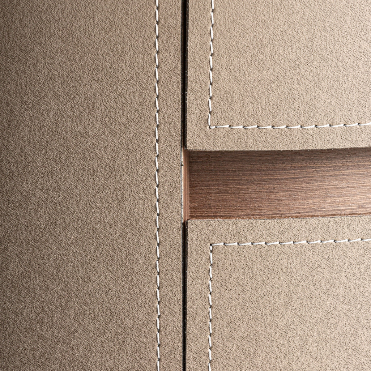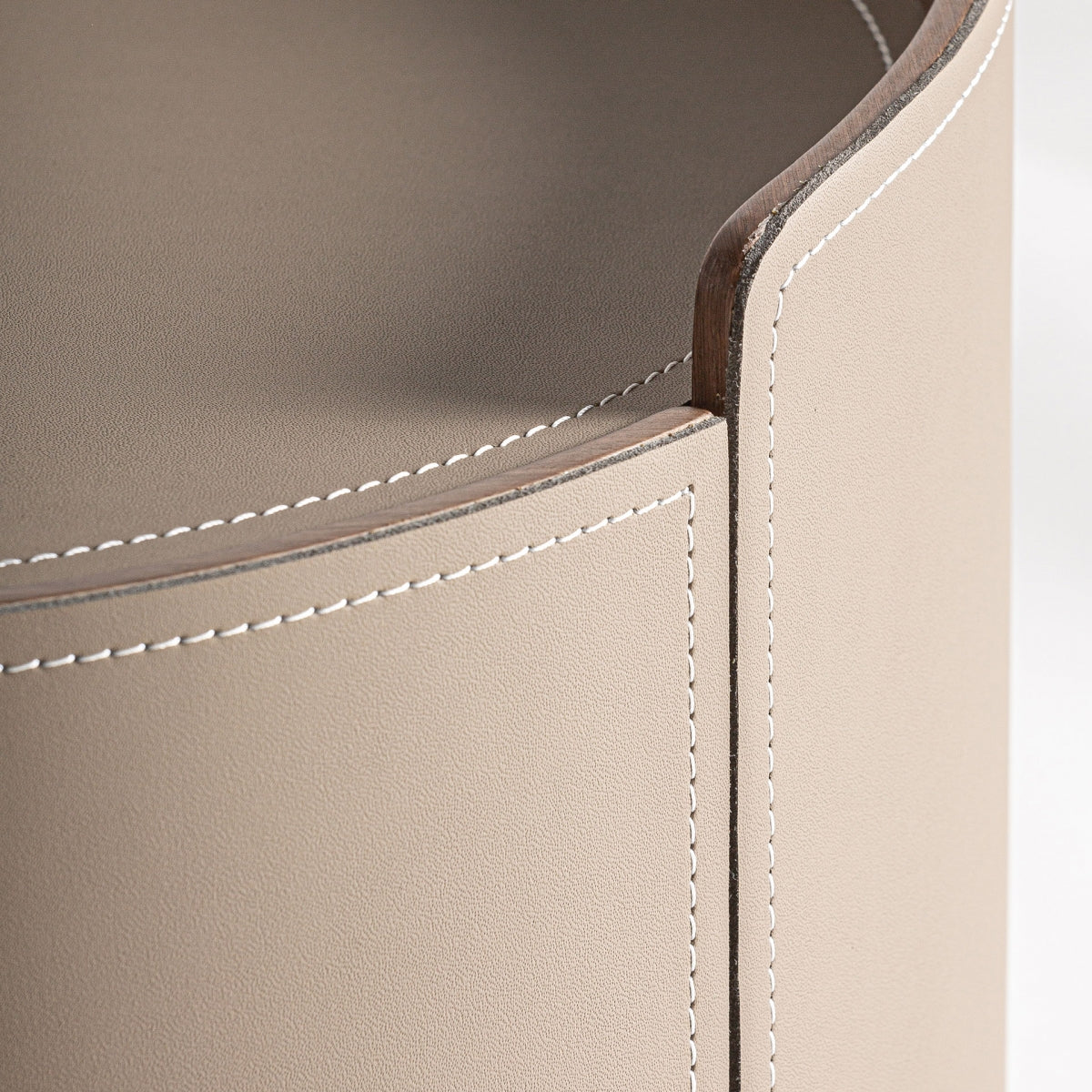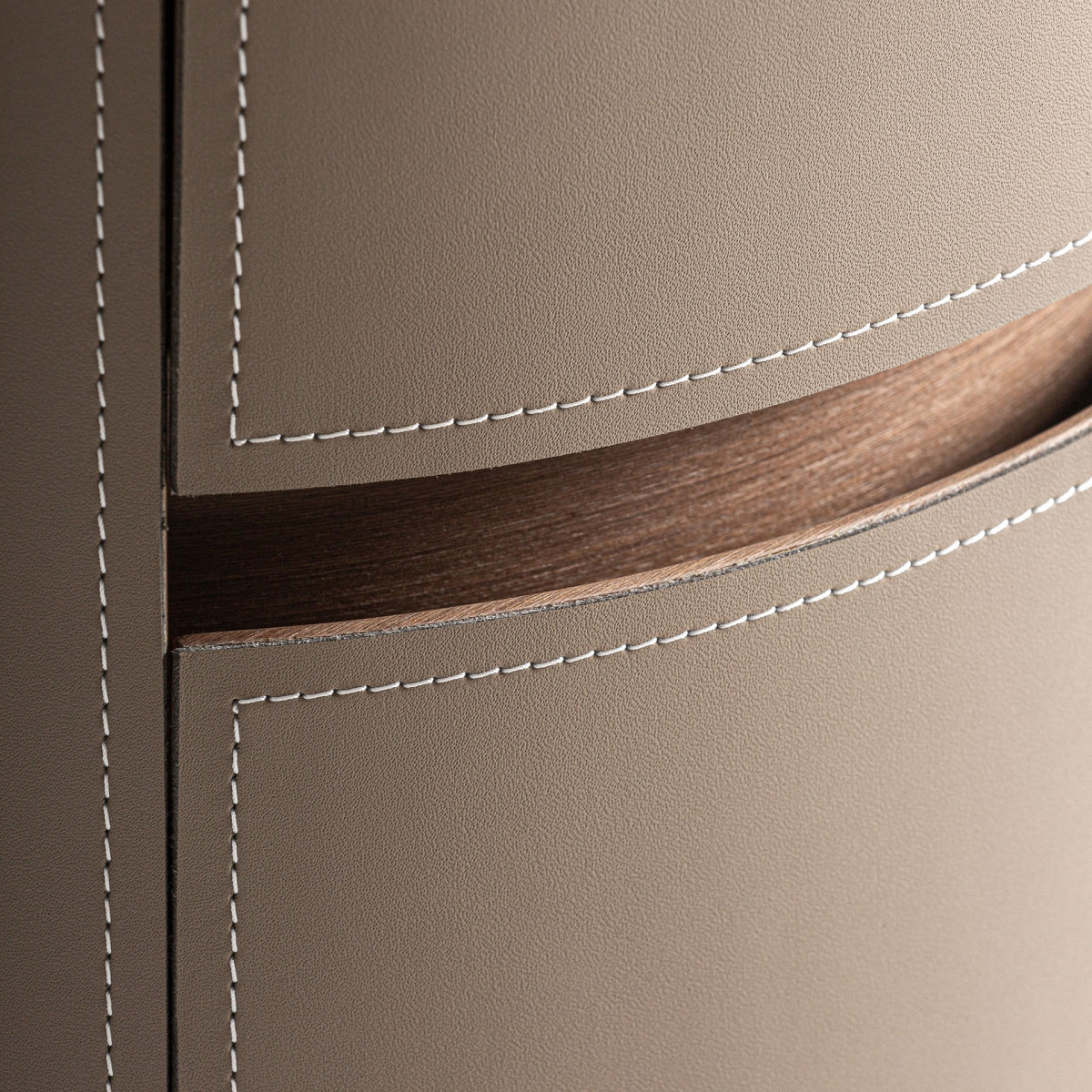 La KANDERN está cuidadosamente elaborada con madera contrachapada, proporcionando una resistencia que perdura a lo largo del tiempo. Un acabado en un sofisticado marrón claro junto a detalles en polipiel aseguran una textura visual y táctil que atraerá todas las miradas. Cada mesita se distingue por su carácter único, donde pequeñas variaciones en el tono y detalles naturales aportan un toque exclusivo a tu hogar.