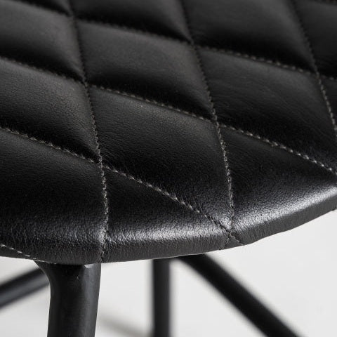 Fabricado en piel de color negro con un patrón acolchado en rombos, el asiento del taburete Chaepe ofrece comodidad y un acabado elegante. Su estructura de hierro negro no solo aporta solidez, sino que acentúa su marcado estilo industrial vintage, ideal para ambientes contemporáneos. Cada pieza, elaborada artesanalmente, presenta ligeras variaciones que hacen de cada taburete una pieza singular.