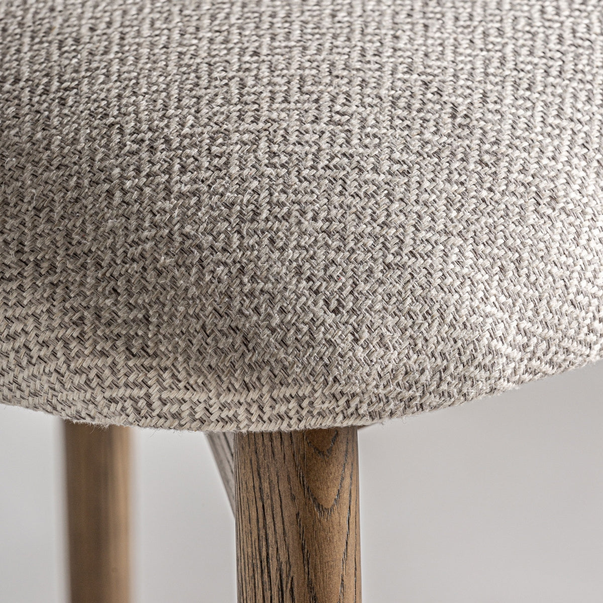 Este taburete está fabricado en madera de fresno, un material valorado por su resistencia y veta visible que aporta textura y autenticidad. El tapizado en poliéster beige añade suavidad y equilibrio visual, creando un contraste armónico con el tono marrón cálido de la estructura. Cada pieza es única gracias a su fabricación artesanal, que puede dar lugar a ligeras variaciones de tonalidad o forma.