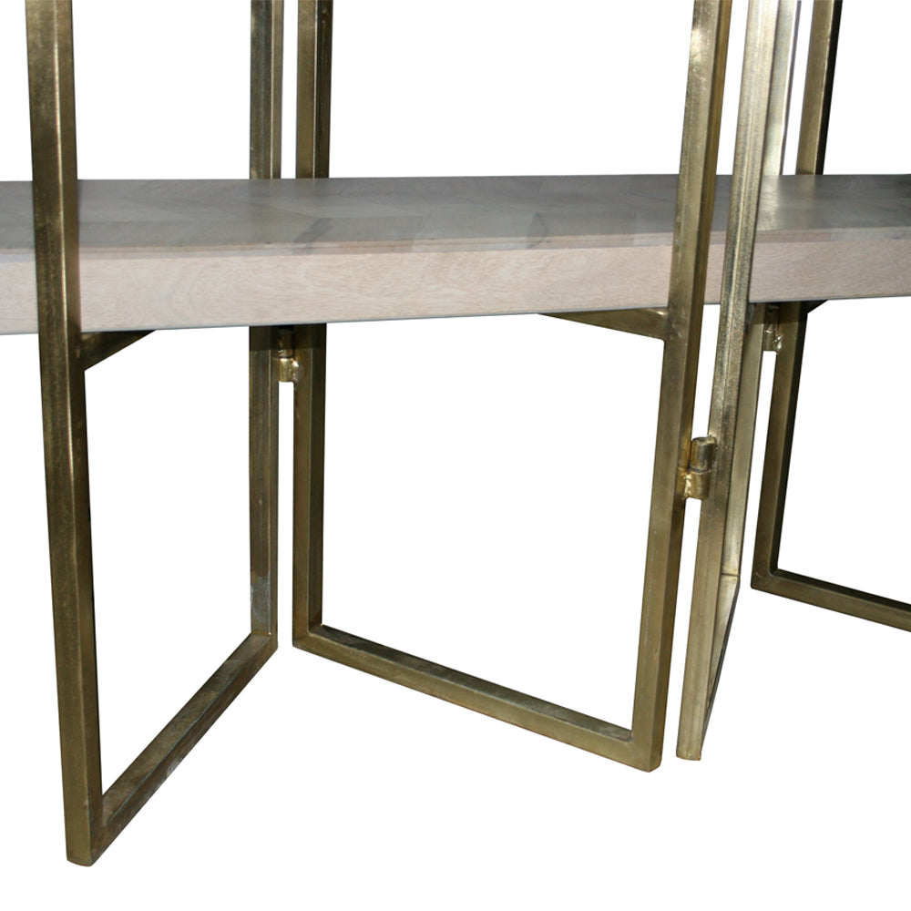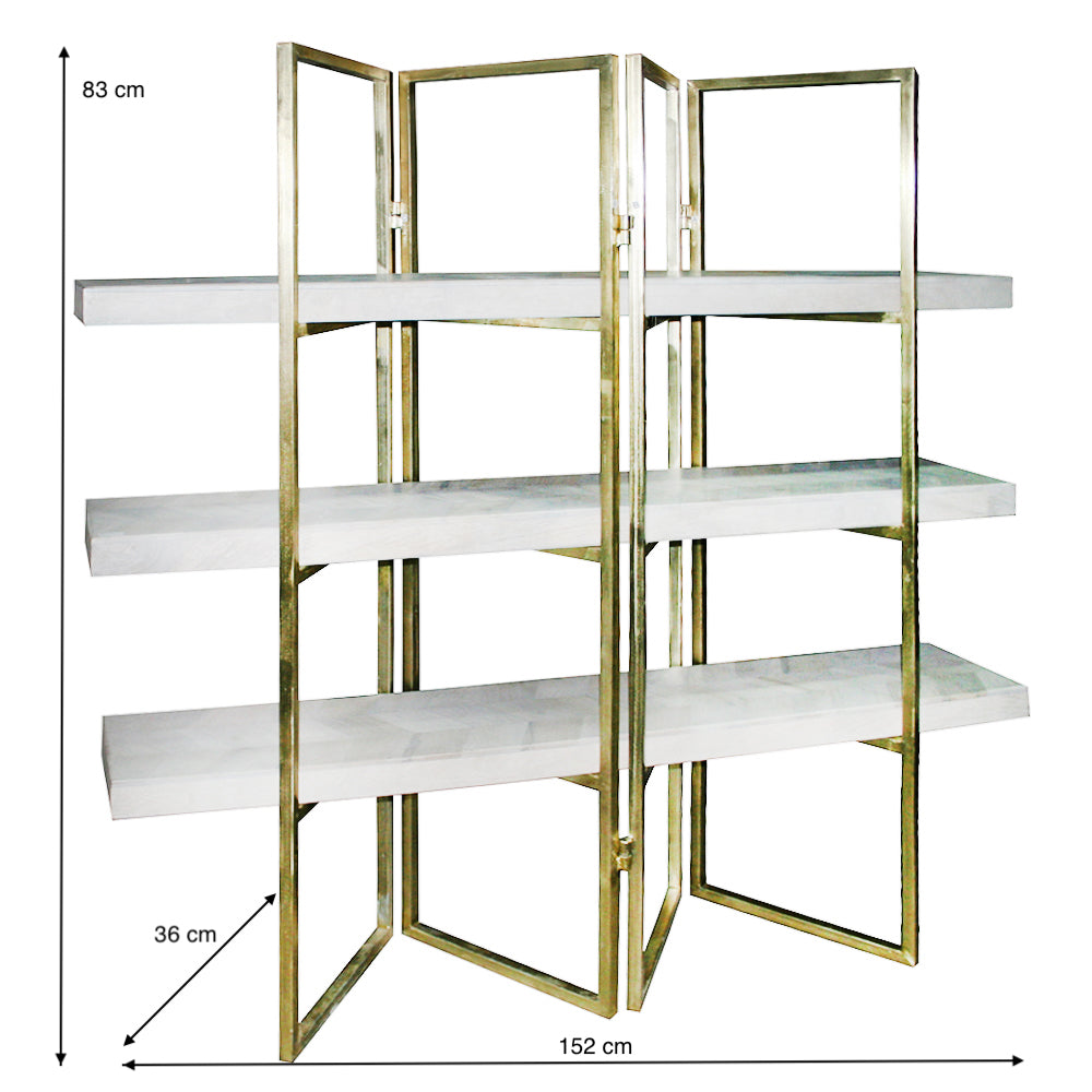 Materializada en hierro dorado, la estantería exuda sofisticación mientras su acabado en madera natural añade calidez a cualquier espacio. Estos materiales garantizan durabilidad y un estilo que se mantiene en tendencia. La combinación de hierro en color dorado y madera no solo asegura un mueble de alta calidad, sino que también proyecta una estética sofisticada en tu hogar.