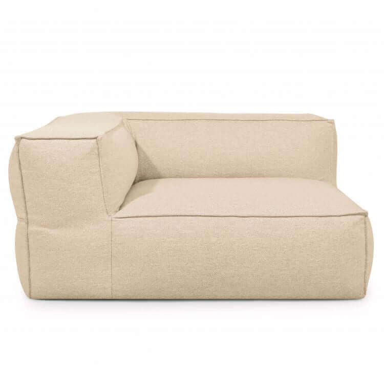 Sofá puff modular esquina izquierda 2 plazas de tejido efecto lino repelente al agua 125×150×72 cm – natural – exterior – MASS CORNER 150 LEFT DUNES