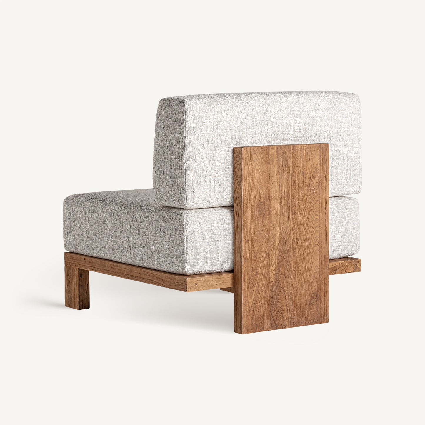 Módulo sofá central de exterior teca reciclada marrón natural y tapizado marrón jaspeado resistente al agua 81×86×83 cm – contemporáneo – jardín o terraza – exterior – TESTA