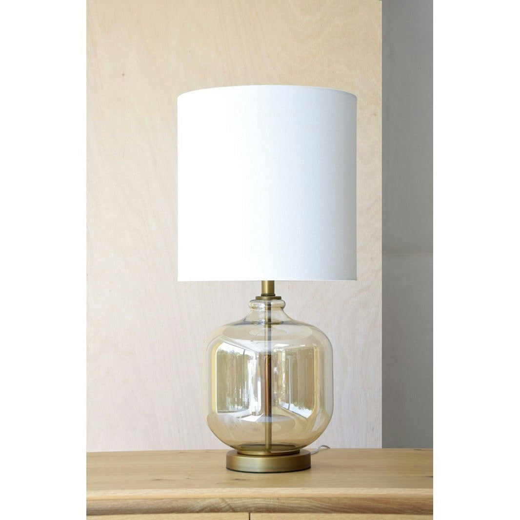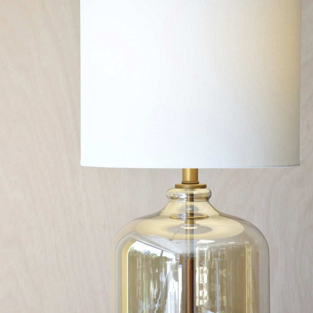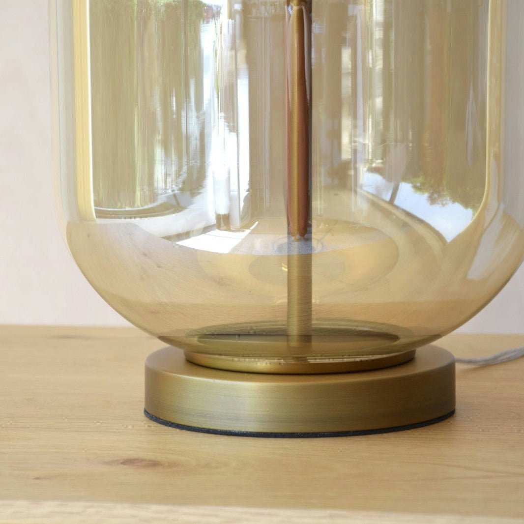 El encanto de la Lámpara de Mesa Bela reside en su exquisita combinación de materiales. Su base de vidrio ámbar, tan resistente como estilizada, se complementa con el acabado en oro envejecido mate, agregando una sutil sensación de lujo. Completada con una pantalla de lino blanco, emite una luz difusa que proporciona una iluminación atmosférica ideal para cualquier ambiente.