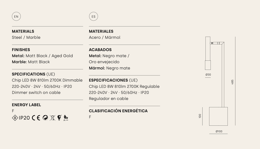 Lámpara de mesa en Metal Ycro