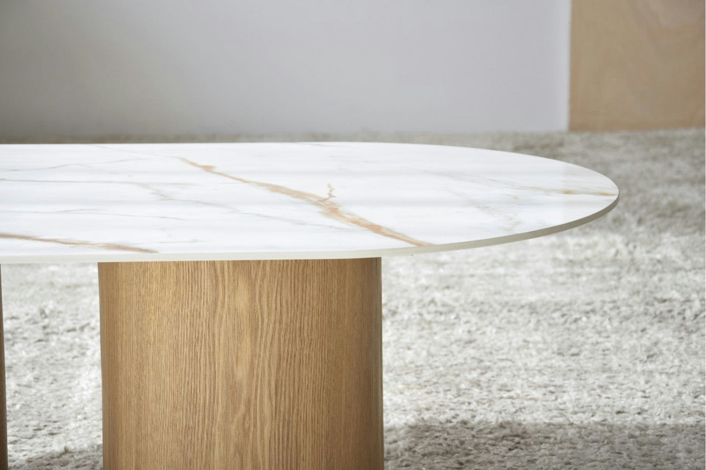 Mesa de Centro en Cerámico Blanco y Ocre y Fresno Natural Bahía