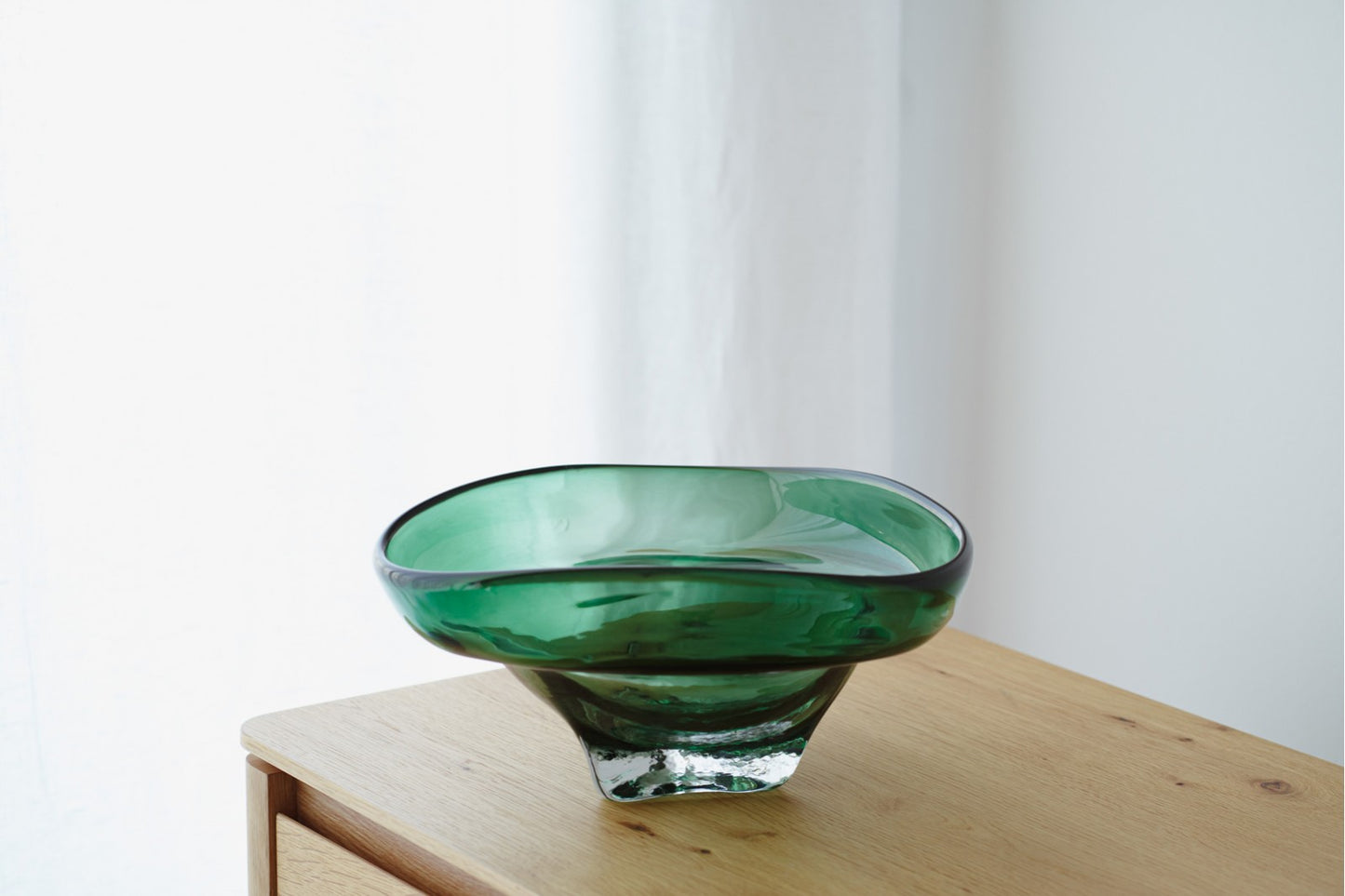 Set de centros de mesa de vidrio verde y ahumado – orgánicos – EREA