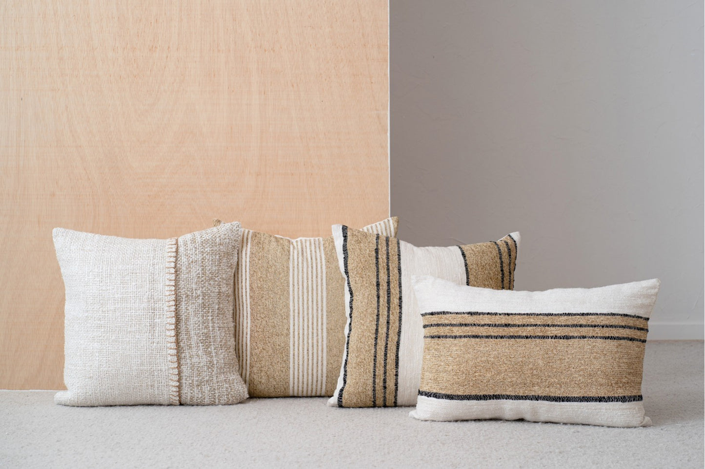 Cojín de algodón blanco, camel con franjas negras 60x40CM – natural – ERO N2