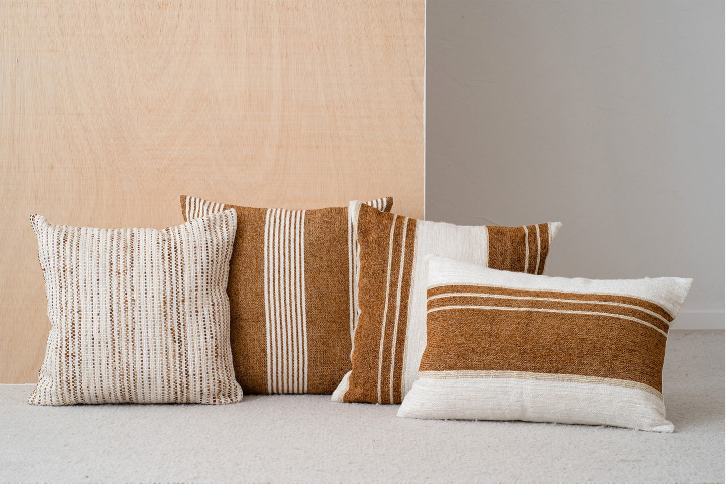 Cojín de algodón blanco, beige y ocre con franjas – natural – MINIA N4