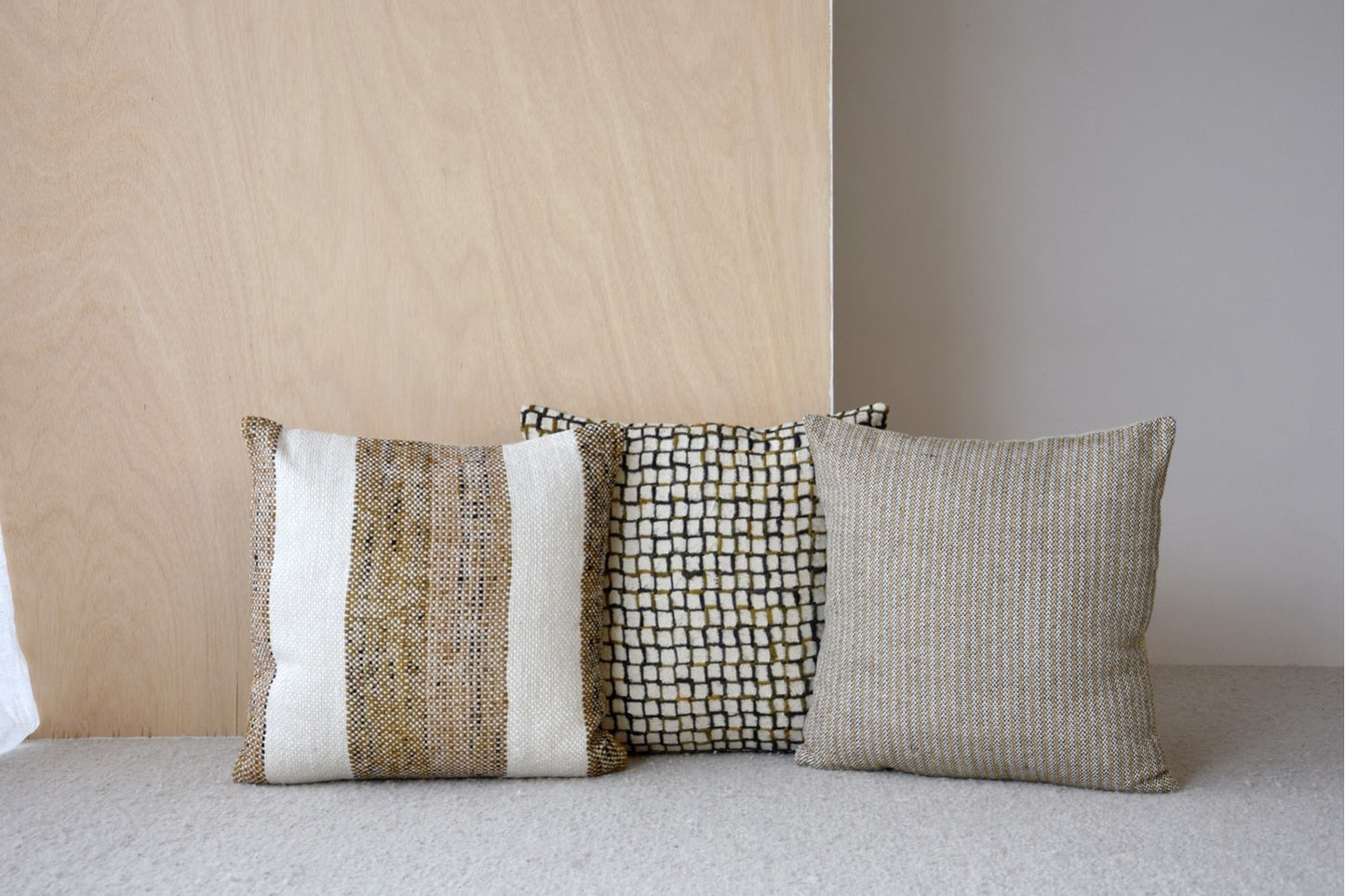 Cojín de algodón mostaza y blanco con franjas 50X50CM – natural – LAZA N2