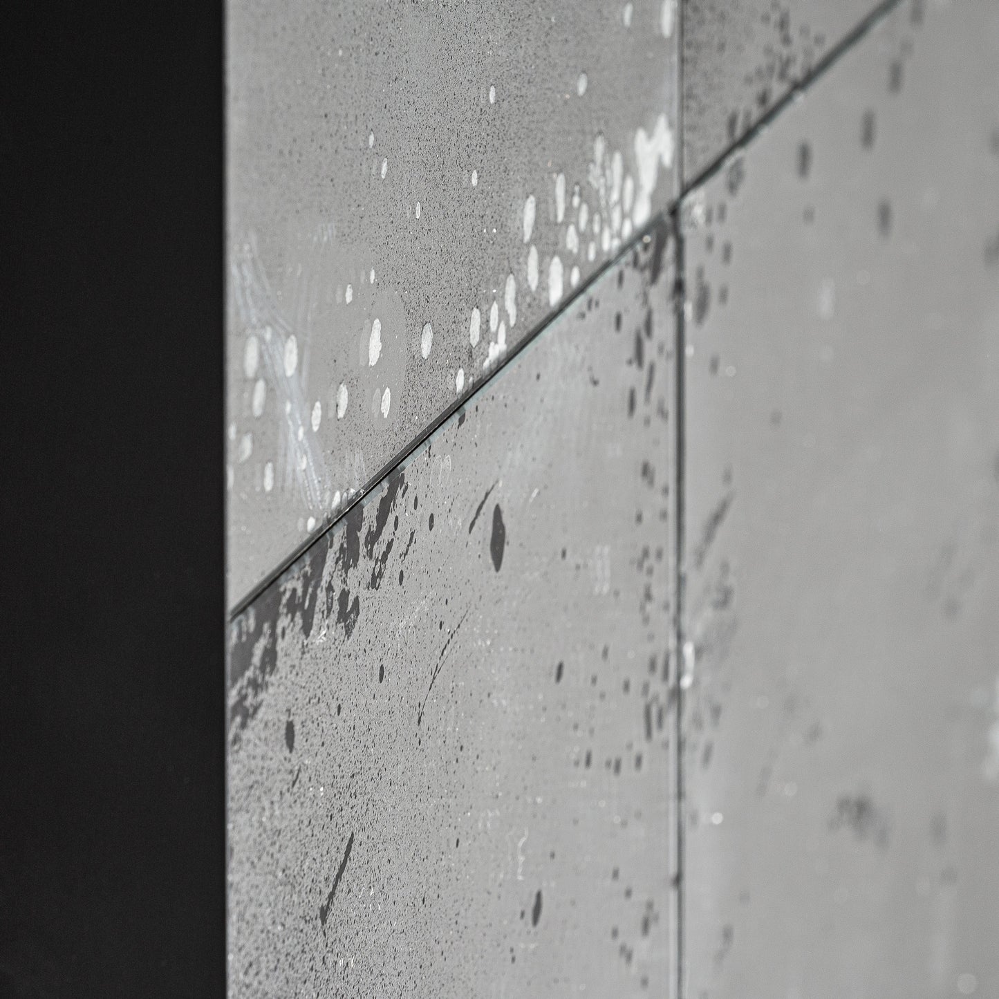 Fabricado en hierro negro y cristal espejo, la estructura muestra la solidez y el carácter de los materiales nobles. El marco en acabado negro contrasta con el brillo del vidrio, logrando una armonía visual que destaca sin estridencia. El peso y la robustez de la pieza transmiten confianza y durabilidad, mientras que el acabado mate del hierro aporta textura y presencia discreta.