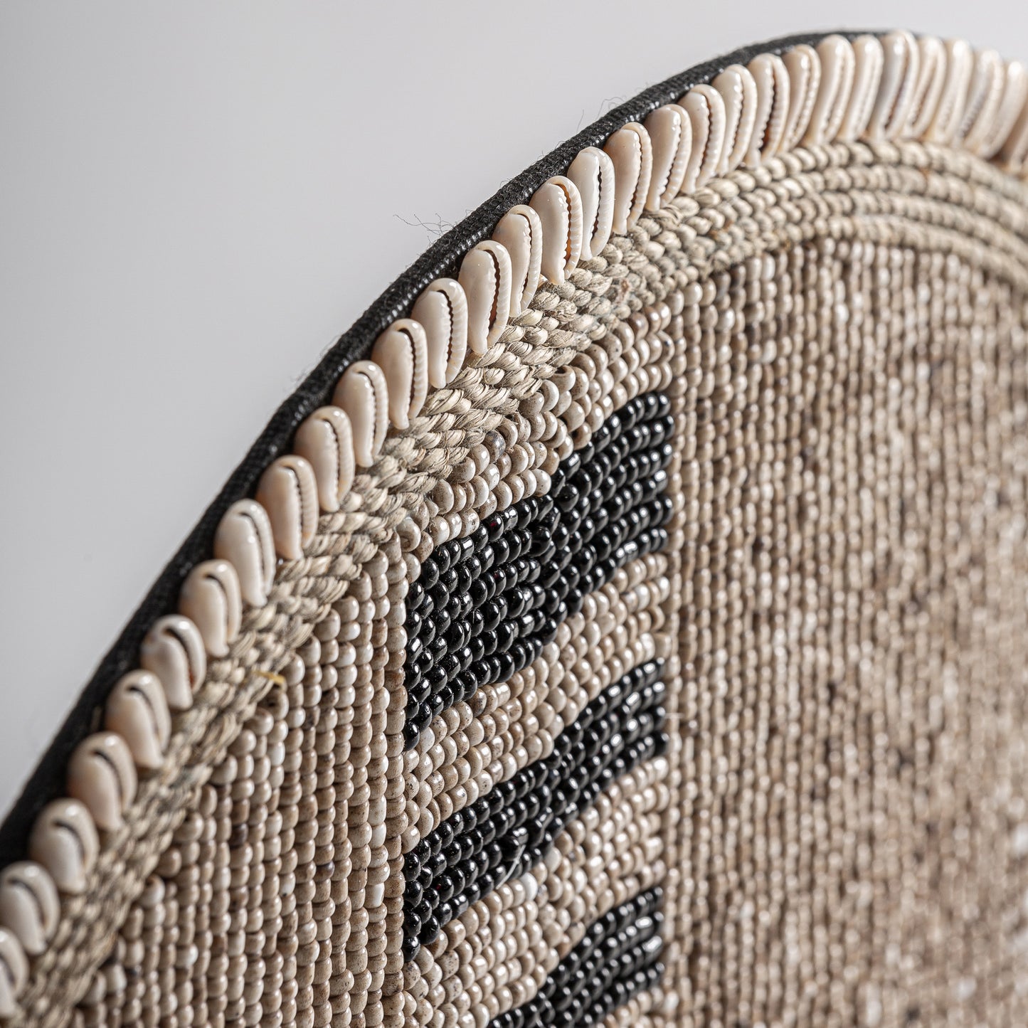 La pieza establece un diálogo sofisticado entre dos mundos opuestos pero complementarios. Por un lado, el bambú en tonos neutros aporta una textura táctil y una calidez que evoca la artesanía tradicional, trabajada con patrones geométricos que actualizan su esencia. Por otro, la estructura de hierro en acabado negro mate dibuja líneas firmes y esbeltas, aportando la solidez necesaria y un aire arquitectónico. Esta fusión de fibra natural y metal perfilado eleva la percepción de calidad, ofreciendo una estética de lujo silencioso lejos de lo industrial.