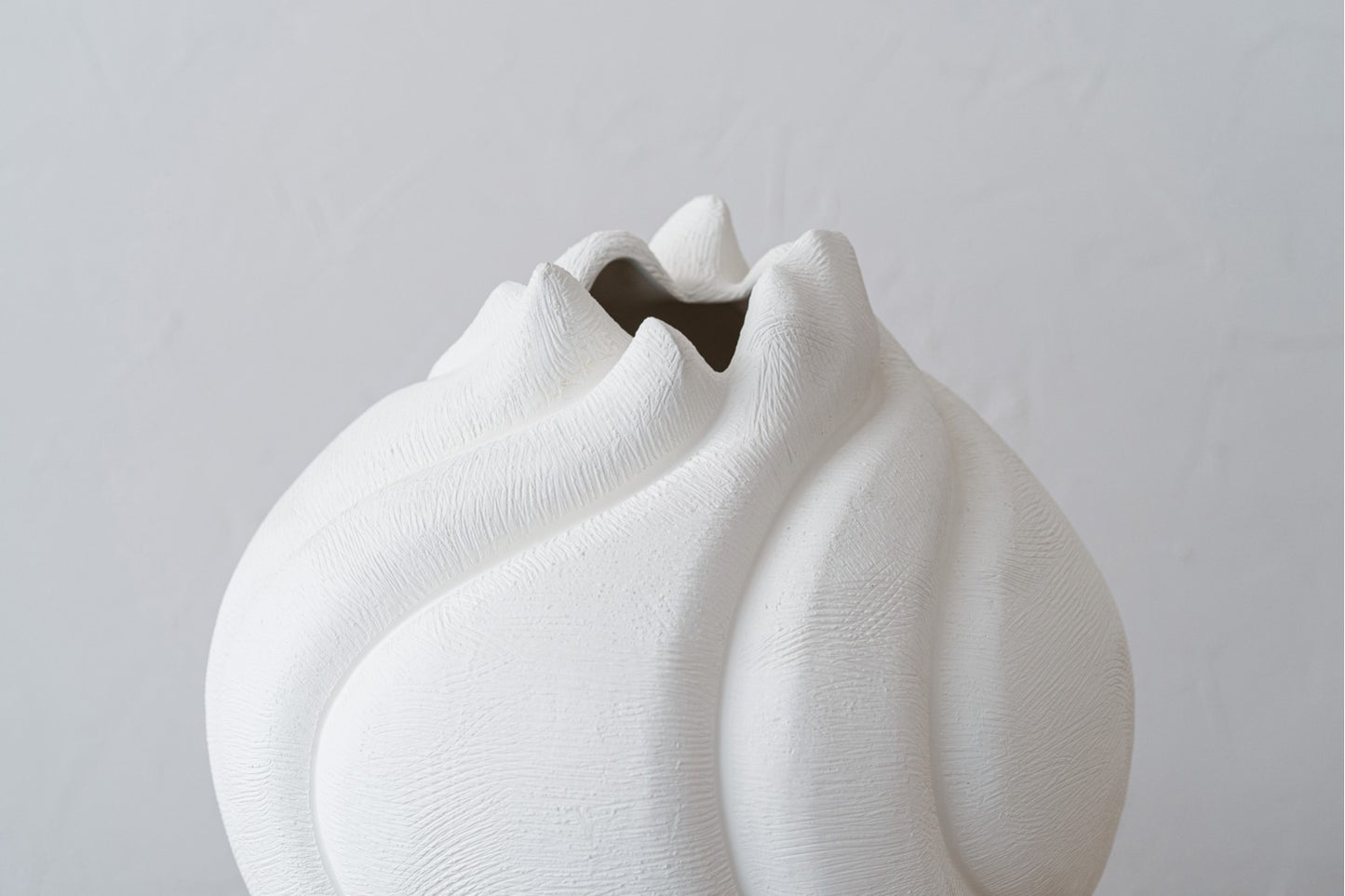 Confeccionados en cerámica mate y cocidos a alta temperatura, tanto el jarrón como el centro ofrecen una estructura robusta y duradera. Su acabado blanco mate realza las formas orgánicas y esculturales, mientras que las delicadas líneas trabajadas a mano aportan un aire artesanal único. La calidad de la cocción garantiza resistencia y conserva la belleza atemporal de cada pieza, permitiendo que luzcan impecables año tras año.