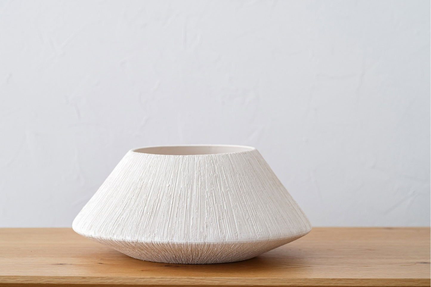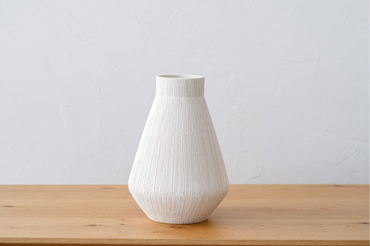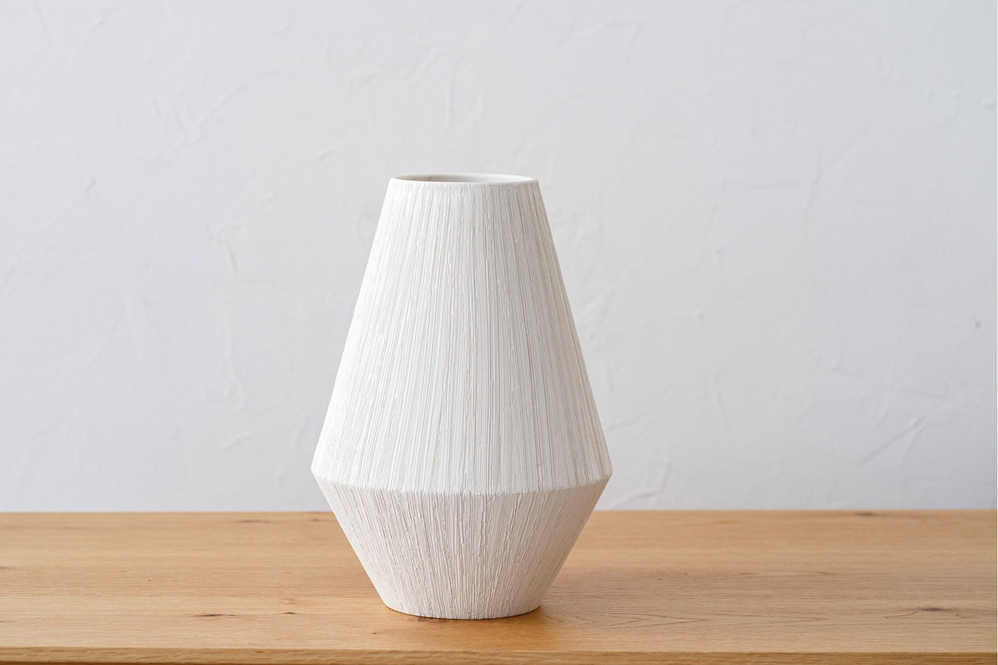Set de jarrones y centro de mesa de cerámica blanca texturizada – Natural – EINÉS