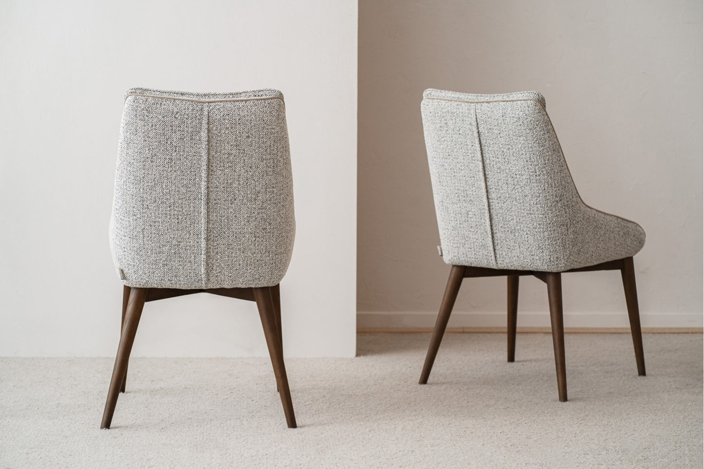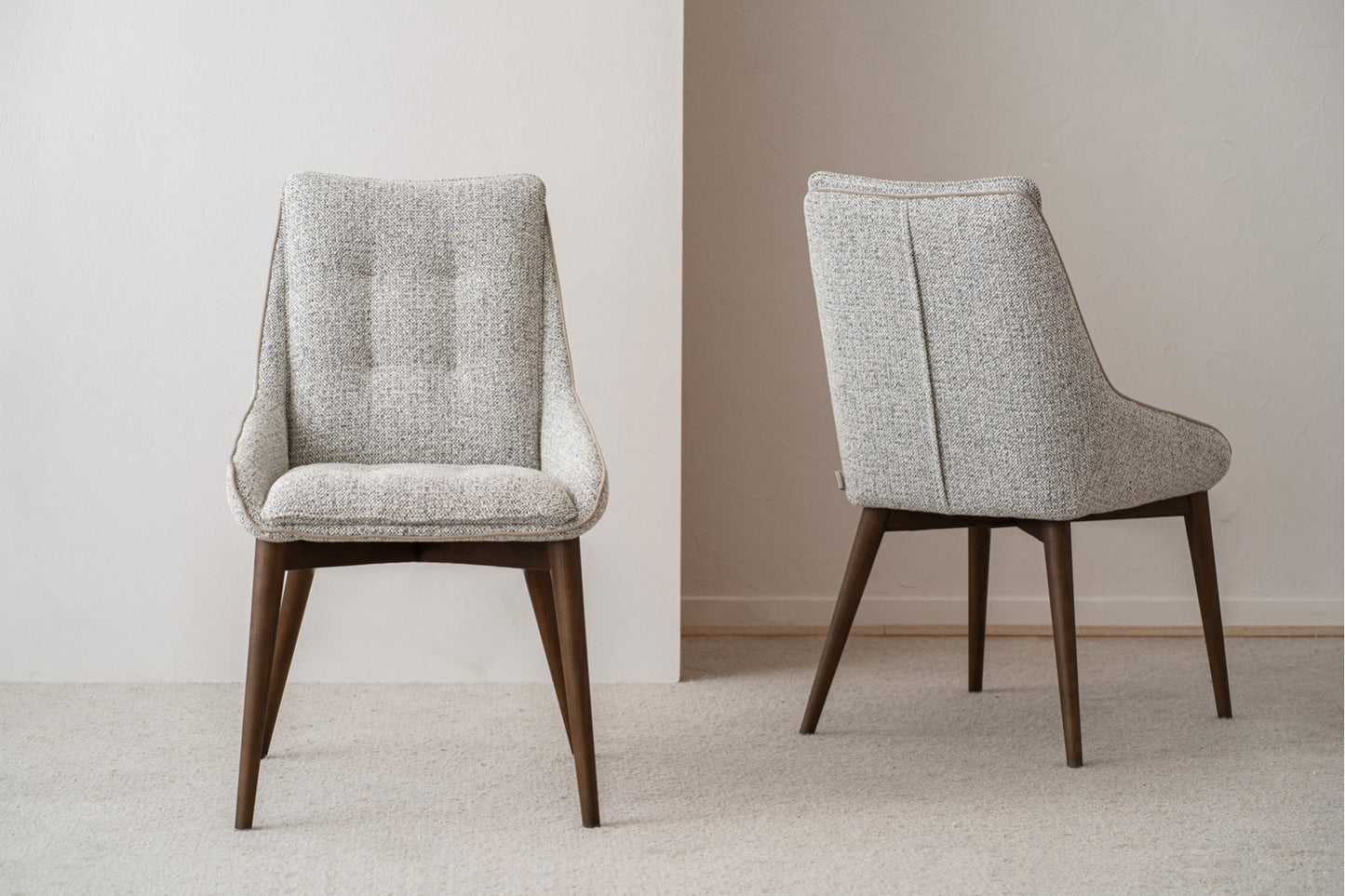 Set 2 sillas de comedor tapizadas en tonos grises 51×67×88 CM – madera nogal – mid century – MÍA