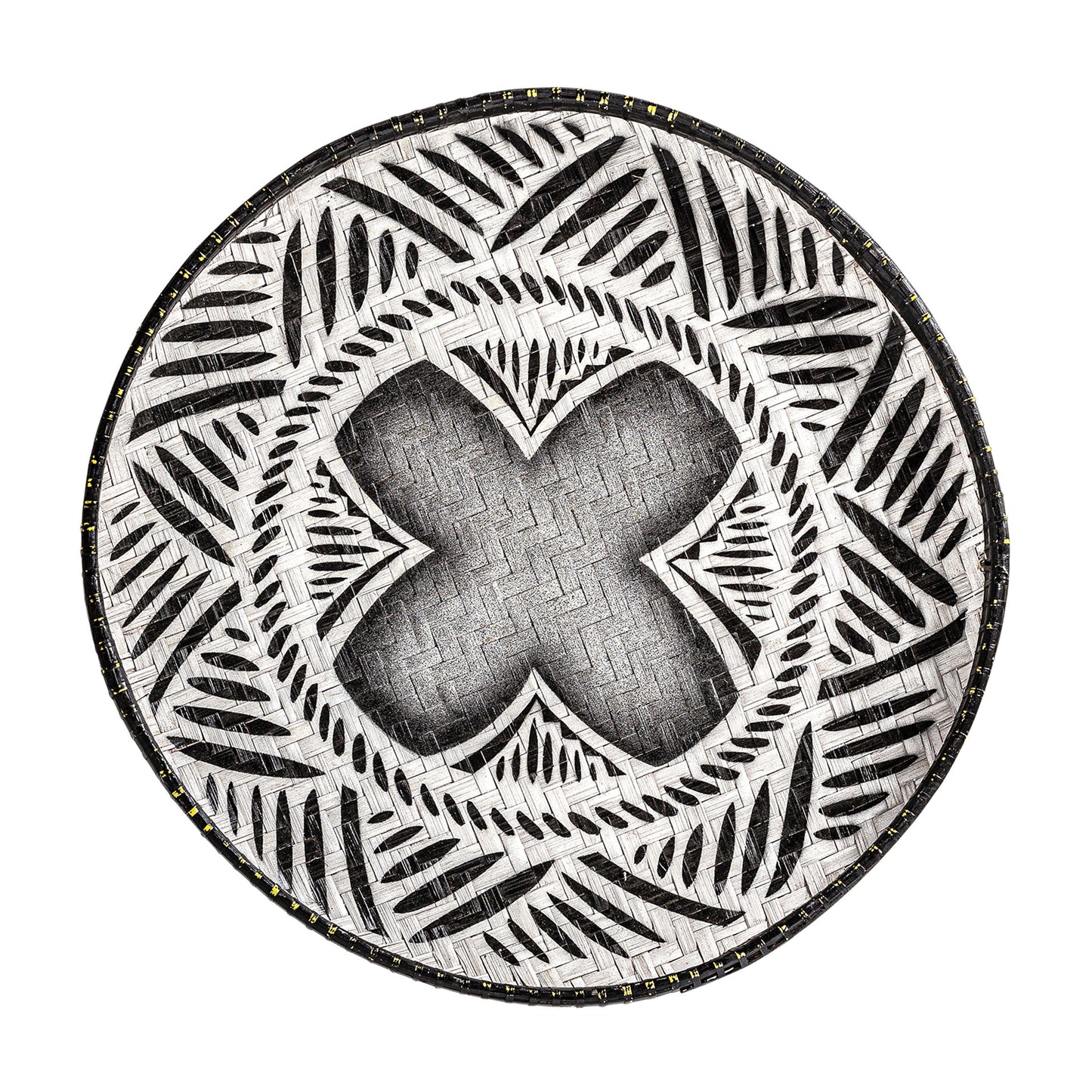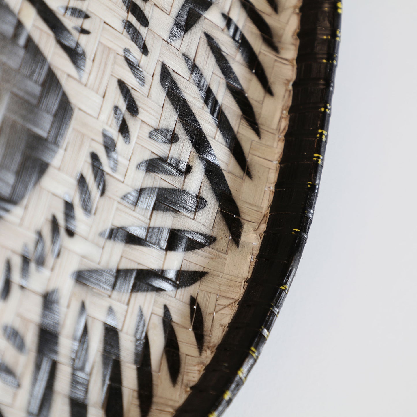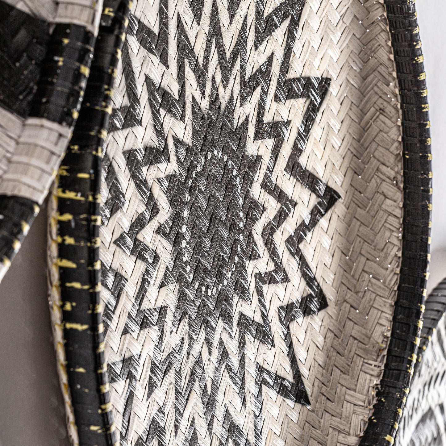 Lejos de los acabados sintéticos planos, estas piezas destacan por su construcción en bambú natural, un material que conserva la esencia orgánica y la calidez del trabajo manual. La superficie presenta un juego de contrastes donde el acabado en blanco y negro no oculta la trama, sino que resalta la nobleza de la fibra vegetal. Su estructura ligera pero sólida ofrece una experiencia táctil auténtica, y su perfil de profundidad variable (máximo 6 cm) crea un interesante juego de sombras y volúmenes sobre el muro, aportando dimensión sin invadir el espacio habitable.