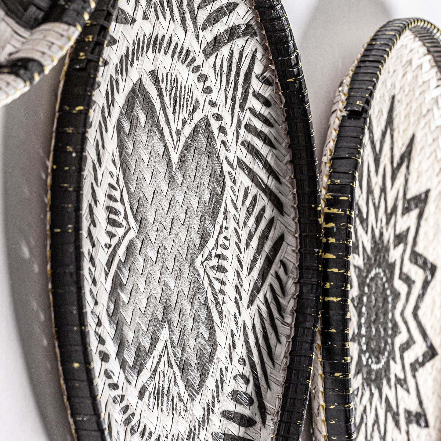 Set de 3 paneles de bambú blanco y negro (Ø67, 58 y 48 cm) - étnico - BÚ