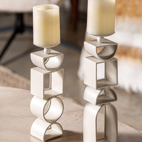 El Greyle es un portavela fabricado en hierro, material reconocido por su durabilidad y solidez. Su acabado en blanco roto garantiza un toque de elegancia que complementa cualquier decoración moderna sin abrumar ni desentonar. La construcción artesanal añade un nivel de detalle que resalta la calidad y exclusividad del producto. La estructura estilizada del Greyle refleja un diseño pensado y cuidado que se adapta con facilidad a las exigencias estéticas de interiores contemporáneos.