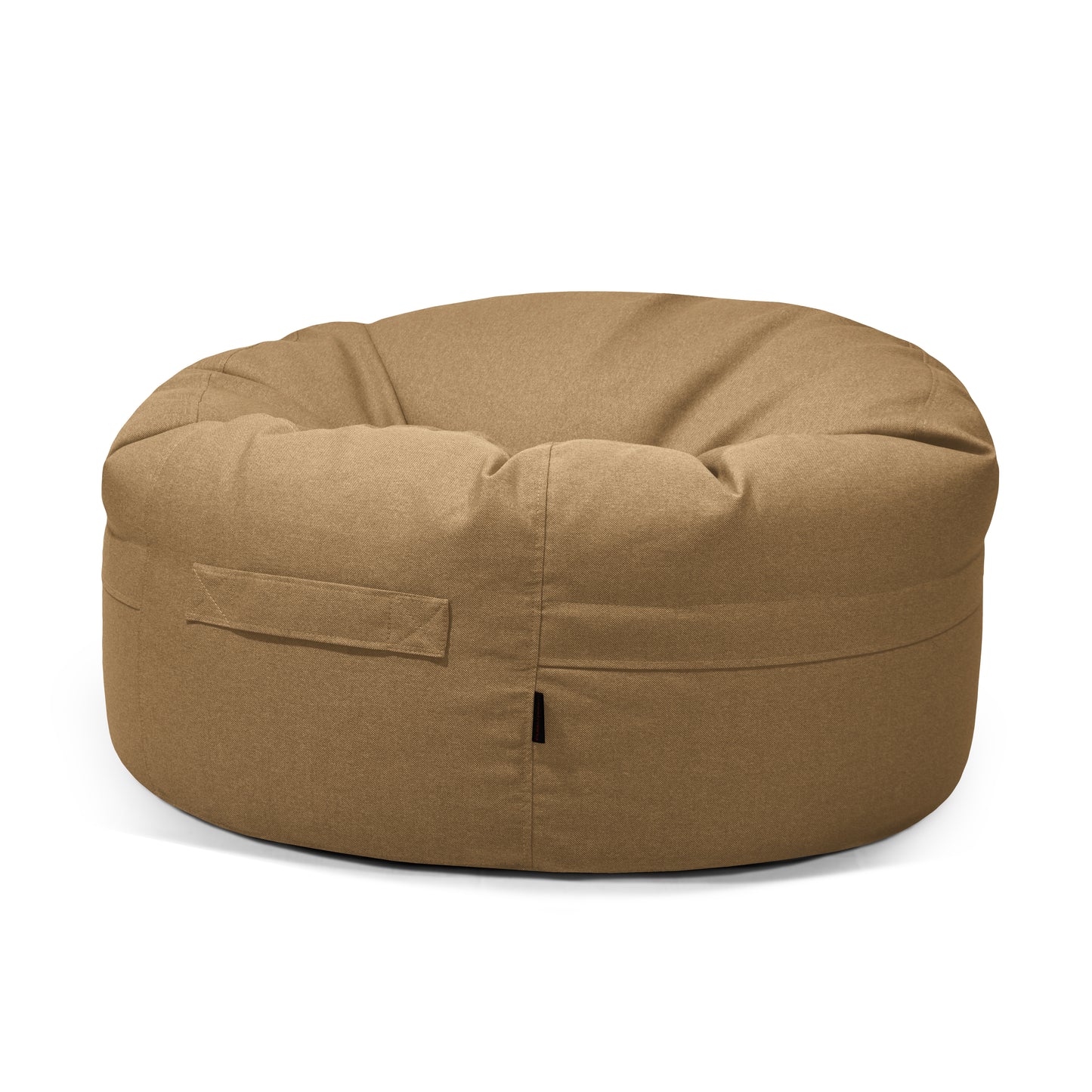 Una bolsa interior, rellena con un relleno propio de pufs, es decir, perlas de poliestireno (EPS). La bolsa interior está cosida con tejidos elásticos para que las burbujas se adapten fácilmente a la forma de la funda exterior y llenen todas sus cavidades.