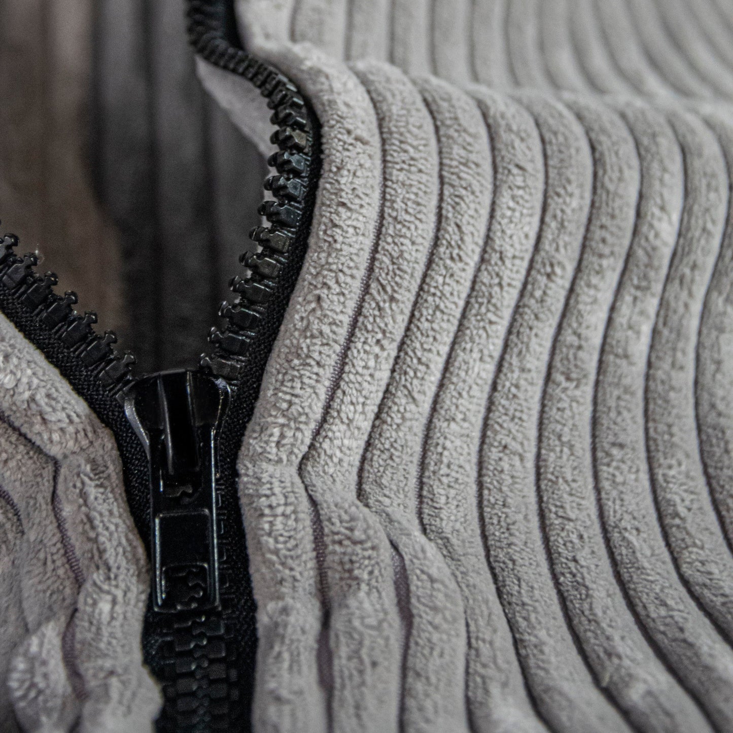 El Bean Bag Cocoon 80 Waves está fabricado con terciopelo de canalé amplio, un tejido de textura cálida y acogedora que añade un toque elegante a cualquier espacio infantil. Su superficie es extra suave al tacto, sin esquinas duras ni estructuras rígidas. El interior está relleno de perlas de poliestireno (EPS), que se adaptan perfectamente al cuerpo del niño, proporcionando un soporte ergonómico y cómodo. Incluye una bolsa exterior lavable con cremallera, lo que permite mantenerlo limpio y fresco con facilidad. Además, su diseño ligero facilita su traslado por distintas estancias del hogar.