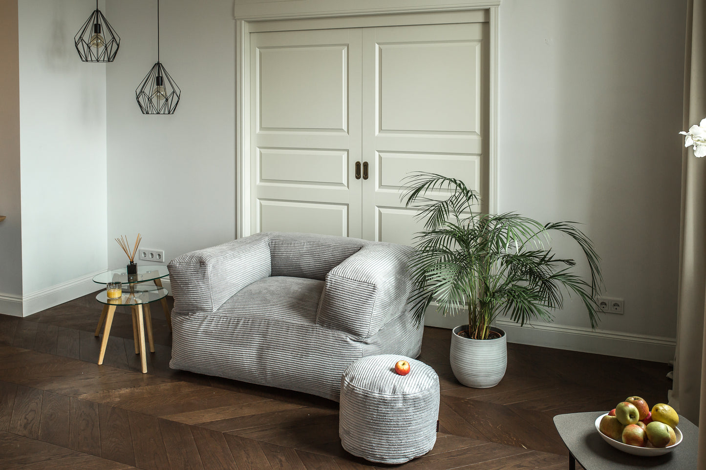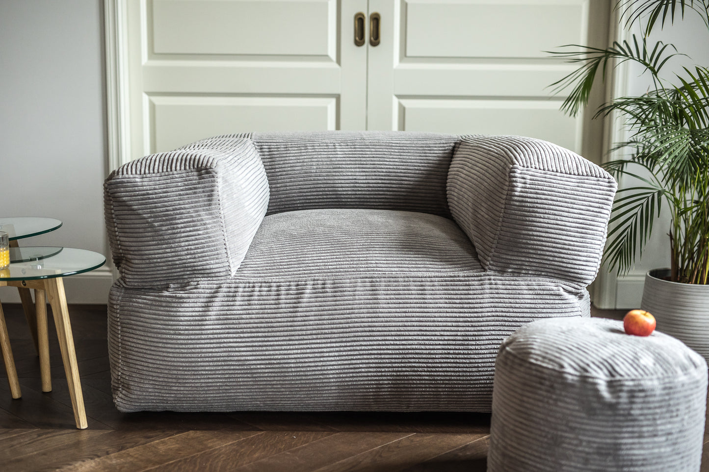 Puff sofá de terciopelo canalé con reposabrazos – contemporáneo texturizado – salón, zona de lectura – 95×125×65 cm – MOOG WAVES