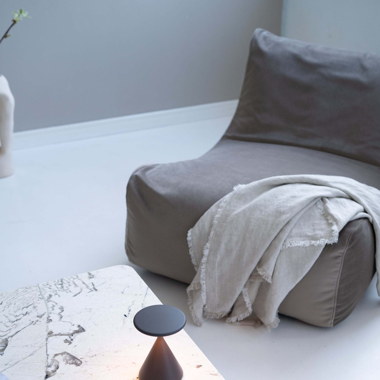 Su acabado en tejido extra suave garantiza una sensación agradable al tacto, mientras que el relleno de perlas de poliestireno de alta densidad se adapta de forma ergonómica a tu cuerpo. Al no tener estructura rígida ni bordes, es una opción segura para hogares con niños. Además, su doble funda permite cambiar fácilmente el aspecto según la temporada o el entorno, combinando funcionalidad y estilo en una sola pieza. Las fundas están disponibles en distintos tejidos certificados, ideales para interior.
