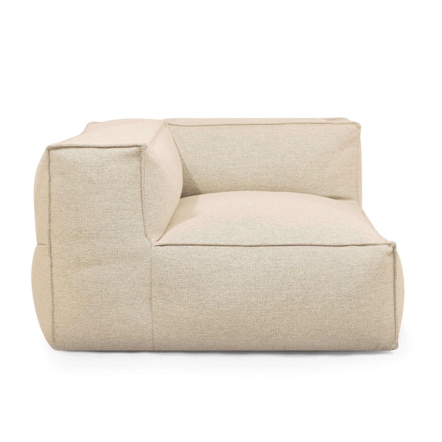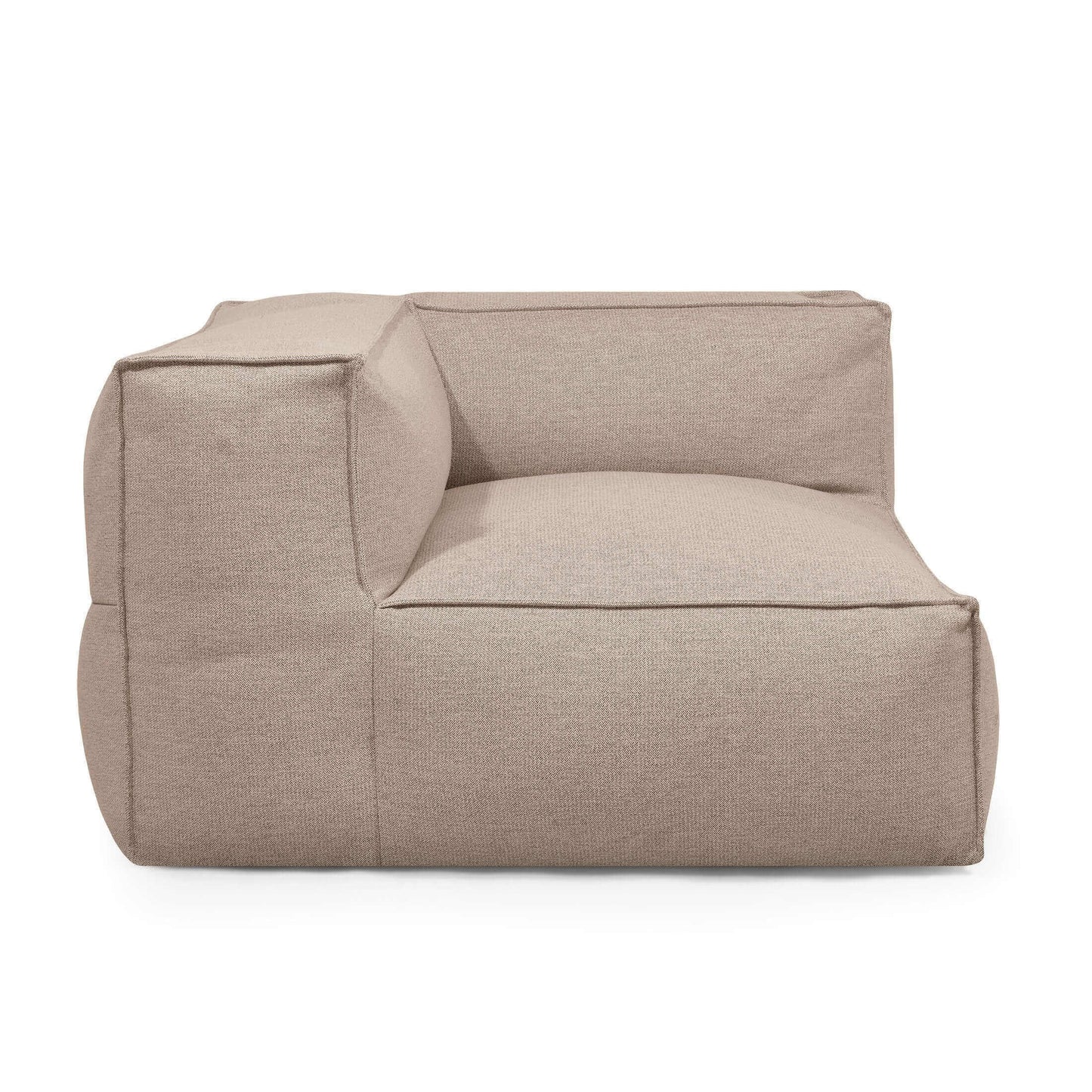 Sofá puff modular esquina izquierda 2 plazas de tejido efecto lino repelente al agua 125×125×72 cm – natural – exterior – MASS CORNER 125 LEFT DUNES