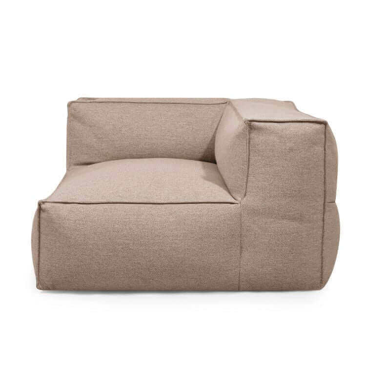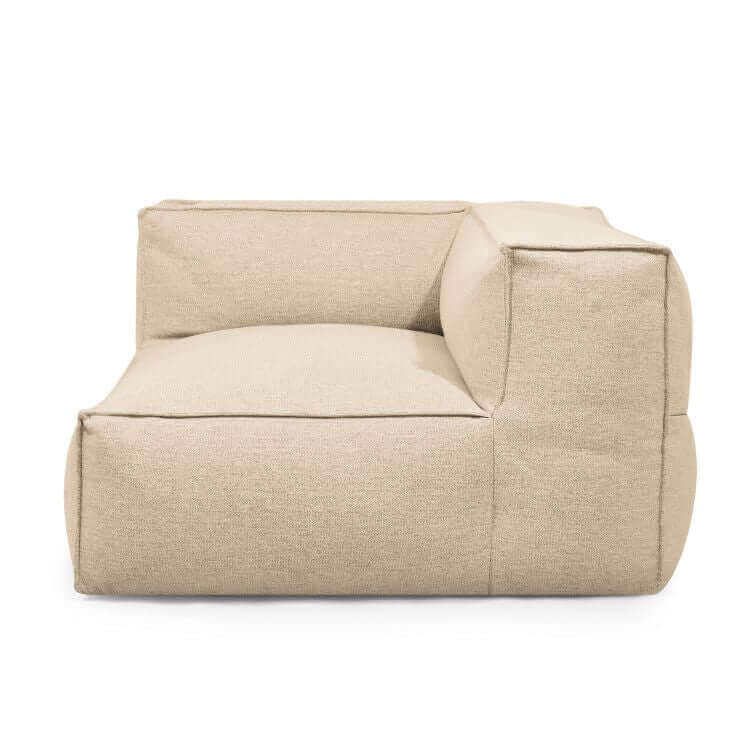 Sofá puff modular esquina derecha 2 plazas de tejido efecto lino repelente al agua 125×125×72 cm – natural – exterior – MASS CORNER 125 RIGHT DUNES
