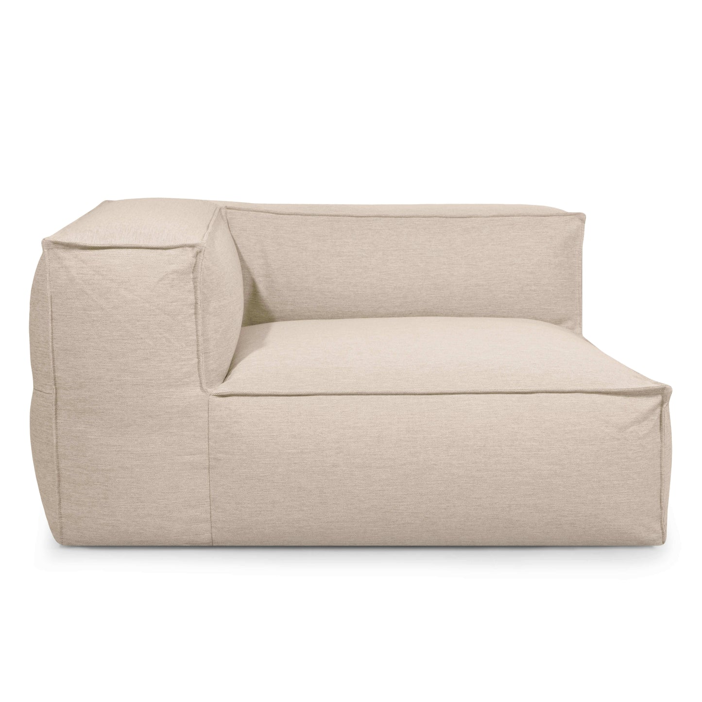 Diseñado con tejido certificado para su uso en exteriores y alta exposición solar, este módulo incorpora un relleno especial de espuma y perlas de poliestireno que se adapta al cuerpo con suavidad. La estructura sin carcasa rígida evita esquinas duras, lo que lo hace seguro para hogares con niños y fácil de mover. Disponible en diferentes telas, puedes elegir el acabado que más combine con tu decoración, y cambiarlo gracias a sus fundas extraíbles y lavables.