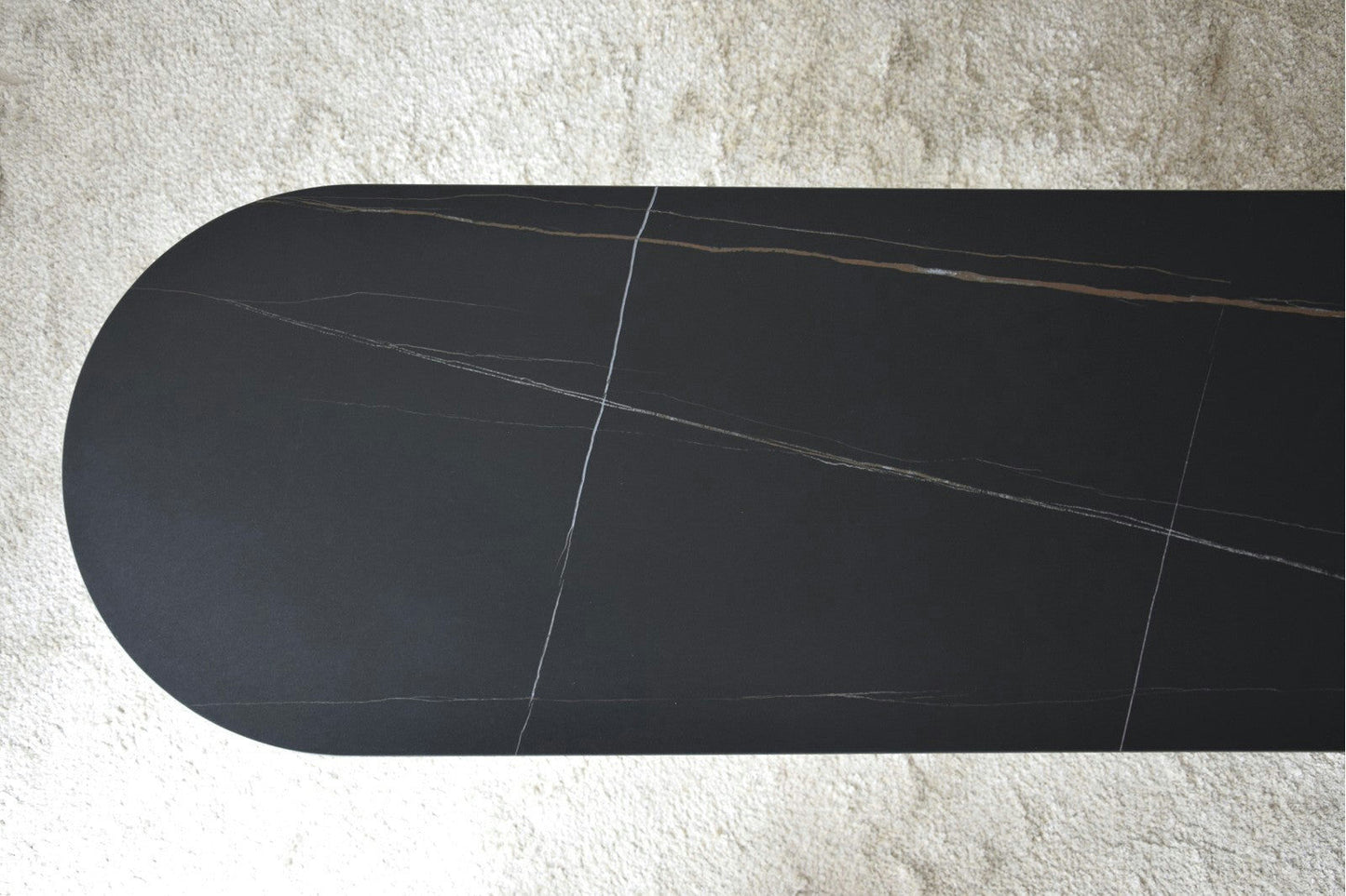 Construida con materiales de alta calidad, la Consola Urbana N.24 presenta un tablero de piedra sinterizada con veteados en tonos ocres, ofreciendo una durabilidad excepcional y una impresionante resistencia al desgaste. Complementada con una estructura metálica en negro mate y cuerpo de DM lacado en gris arena, esta pieza garantiza una fusión perfecta de modernidad y exclusividad.