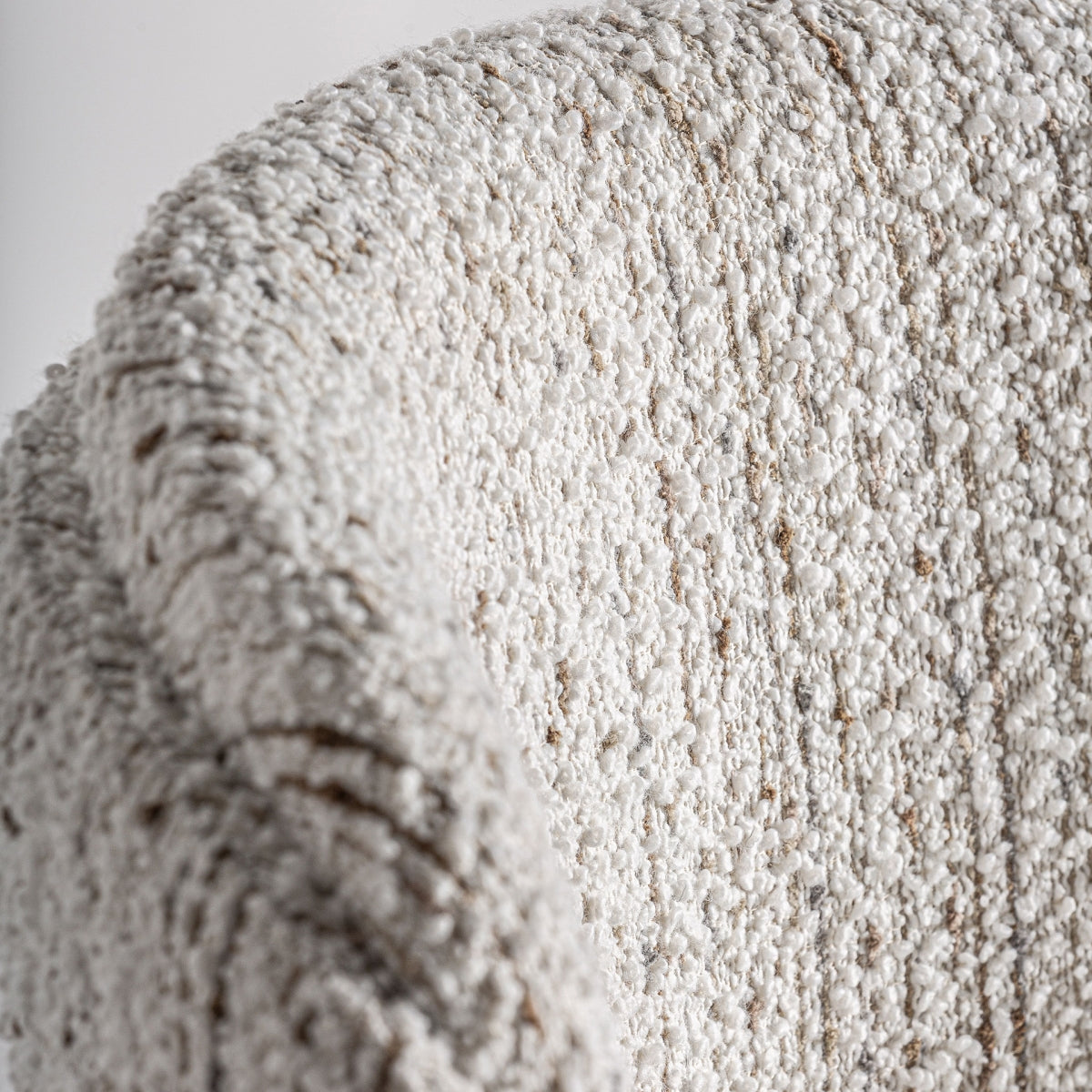 Fabricada artesanalmente, cuenta con una estructura de madera de caucho marrón que aporta un aspecto robusto y auténtico. Su asiento, tapizado en poliéster beige jaspeado, complementa a la perfección el acabado artesanal, ofreciendo además gran comodidad. La atención al detalle en cada grieta y nudo de la madera hace que cada silla sea única, enriqueciendo su carácter visual y táctil.